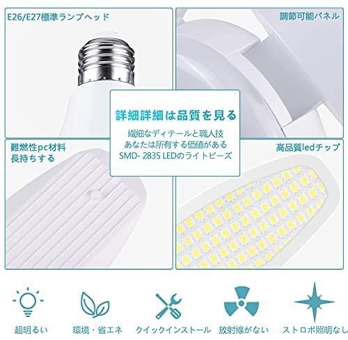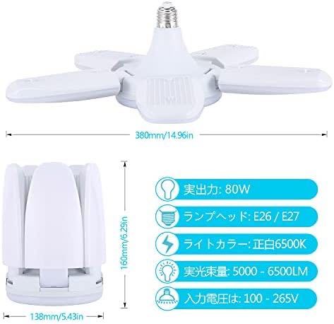 LEDシーリングライト ガレージライト led E26/E27 LED電球 6灯式 80W 昼白色 6500K ペンダントライト 天井照明 ダイニング 折りたたみ式 シンプル おしゃれ 工事不要 角度調節可能 省エネ…