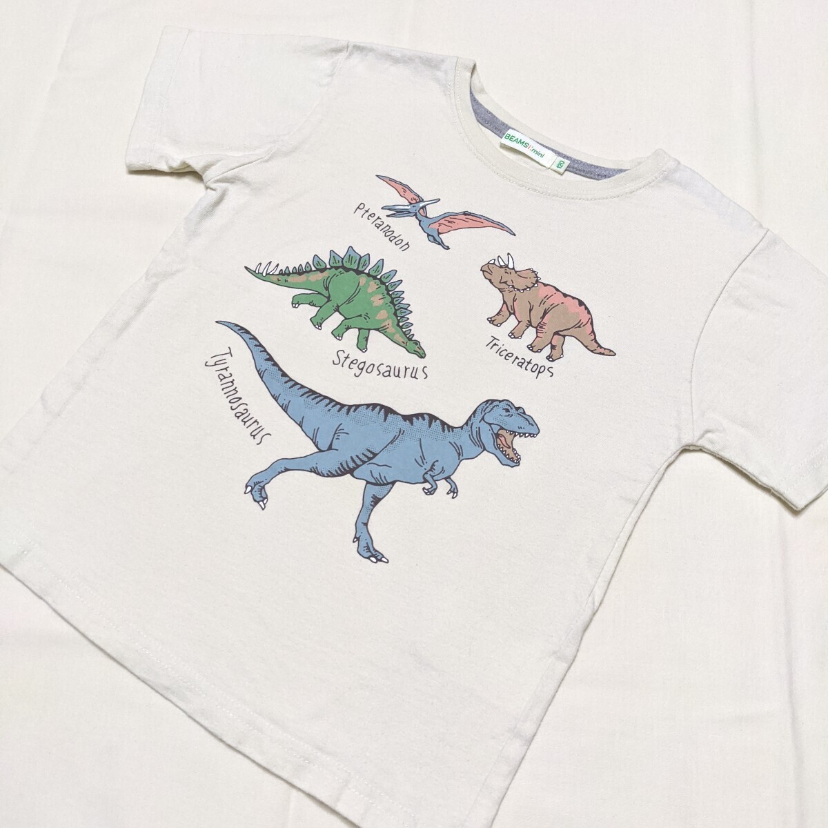 恐竜の絵柄がデザインされた、可愛らしいTシャツです。