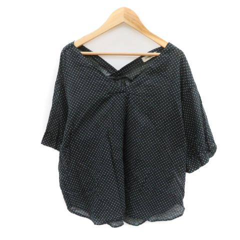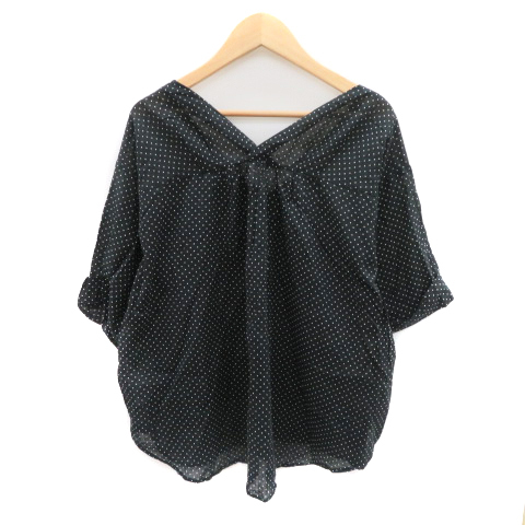 サマンサモスモス SM2 ブラウス カットソー 五分袖 Vネック ドット柄 F 黒 ブラック /YK15 レディース