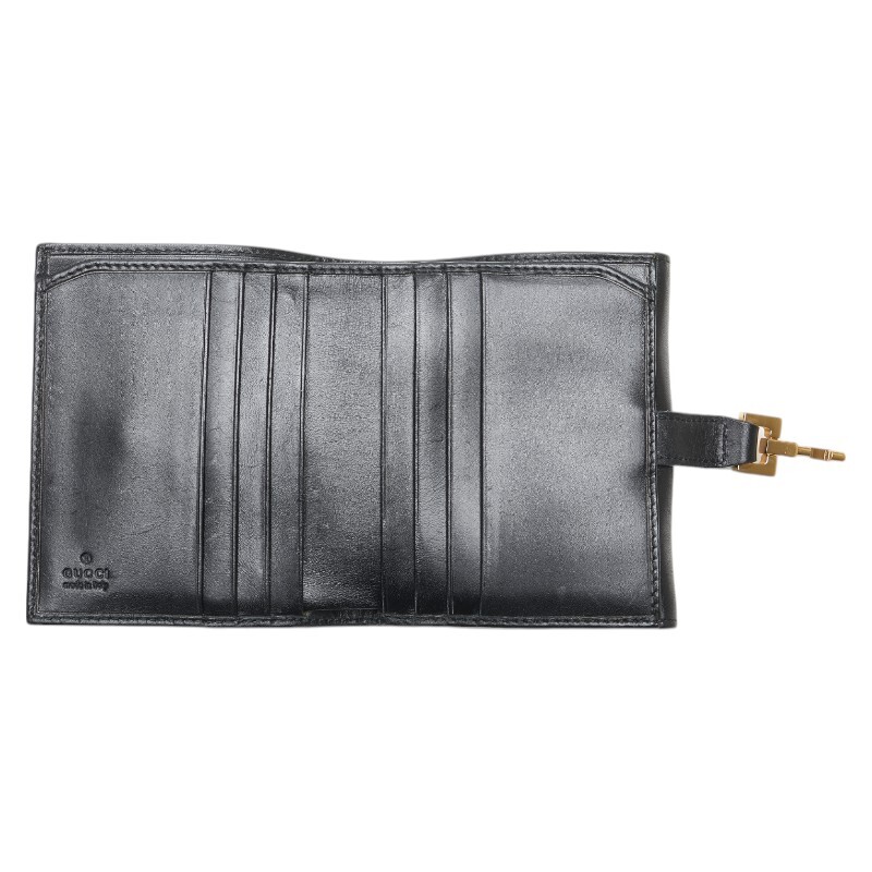グッチ ジャッキー 三つ折り財布 035 2126 2129 ブラック ゴールド レザー スエード レディース GUCCI 【中古】