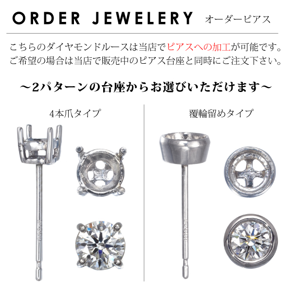 | こちらのダイヤモンドルースは当店でピアスへの加工が可能です。 ご希望の場合は当店で販売中のピアス台座と同時にご注文下さい。 ⇒ピアス台座はこちら |