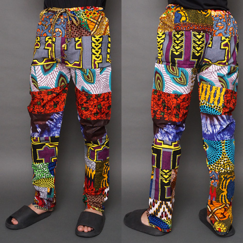 コットンのアフリカンワックス(パーニュ)を使用したブルキナファソのパッチワークパンツです。