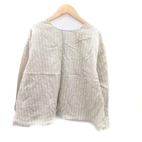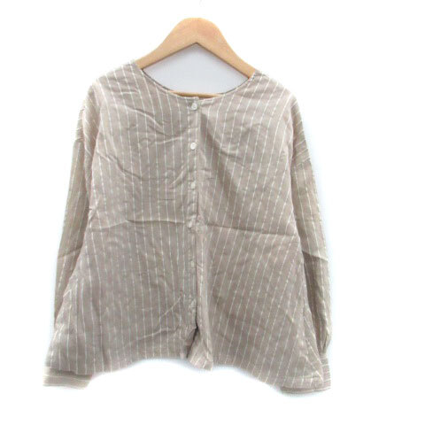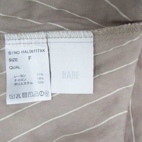 ハレ HARE ブラウス カットソー ラウンドネック 長袖 ストライプ柄 F ベージュ オフホワイト /HO31 レディース