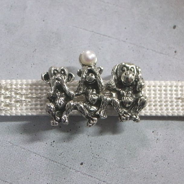 LEAF CLUB ♪ハンドメイド 帯留め 帯留 見ざる言わざる聞かざる 見ざる聞かざる言わざる 真珠 パール 三猿 猿 干支 シルバー/銀