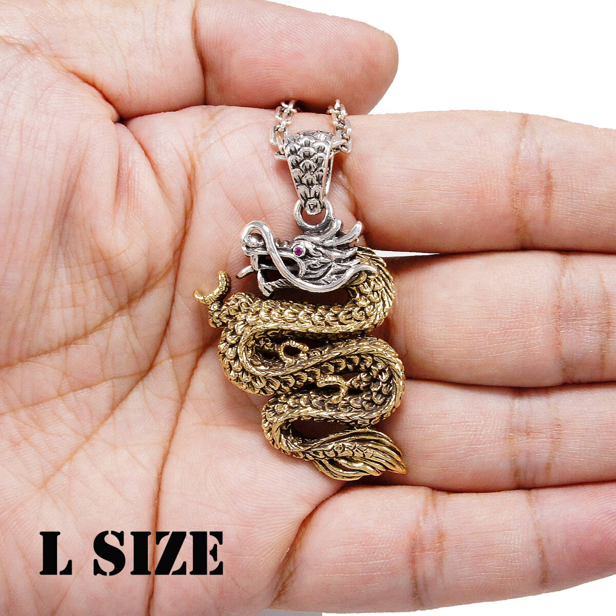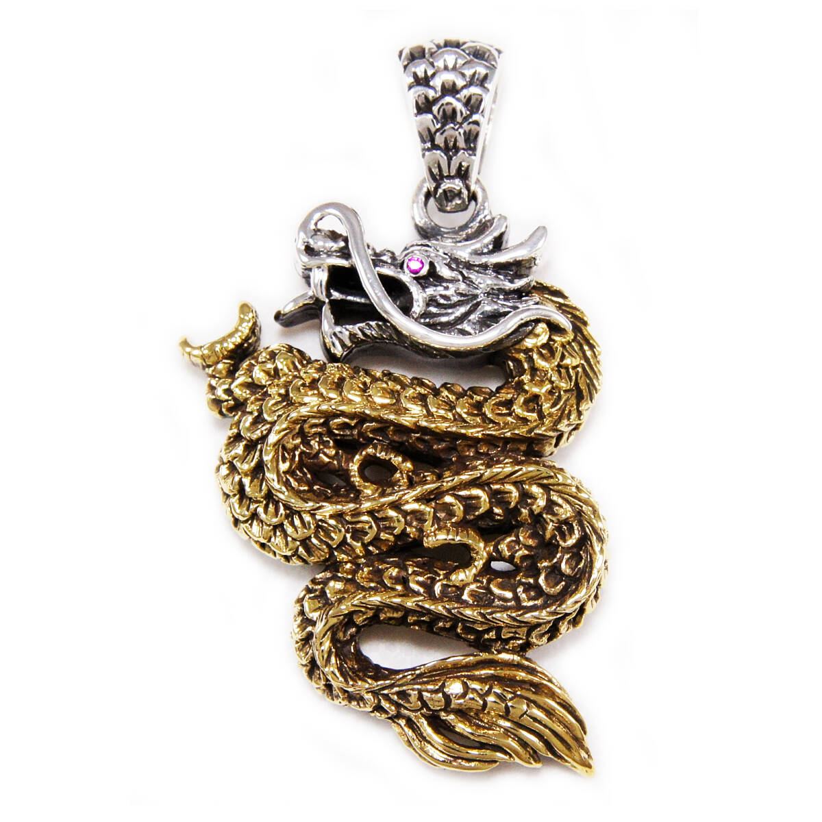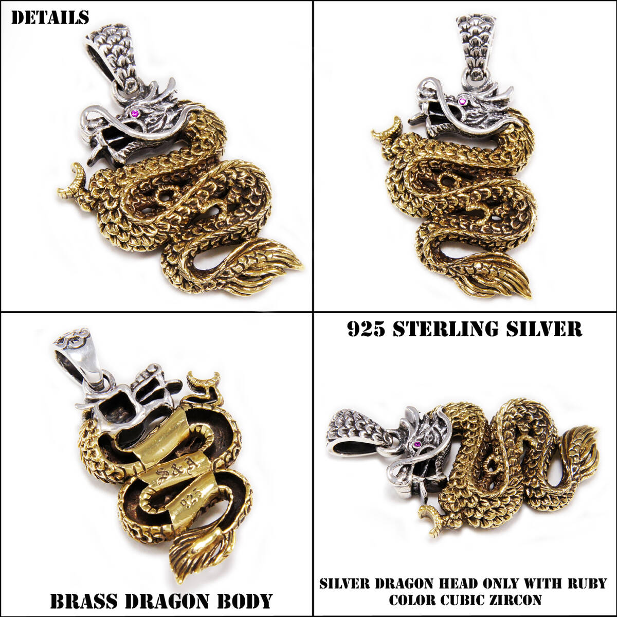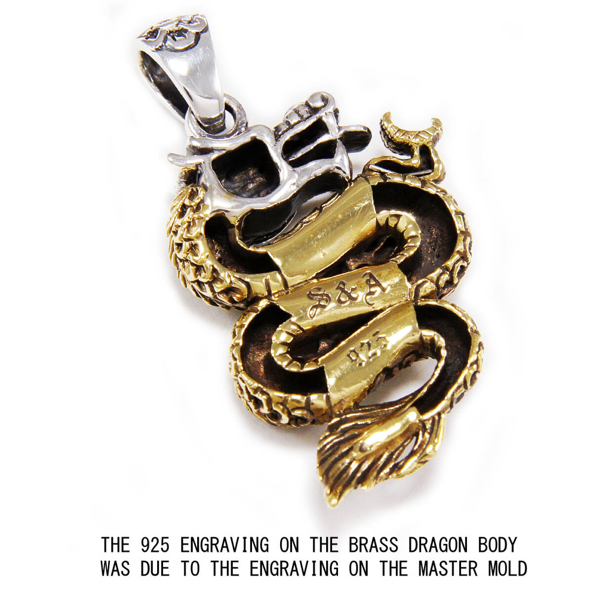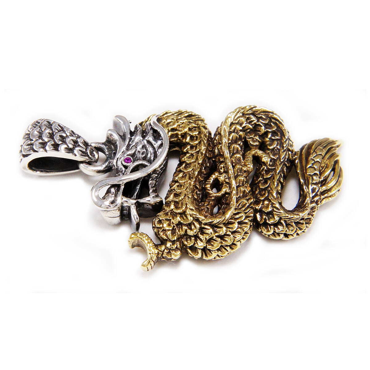 ドラゴン 竜 ルビージルコニア 真鍮 925シルバー ペンダント SA-047
