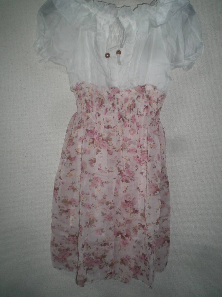 小花柄ピンクブラウスチュニック