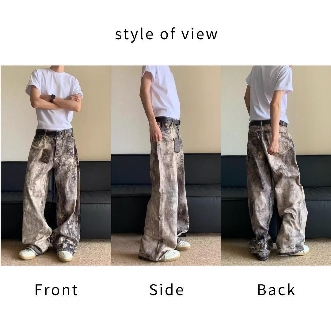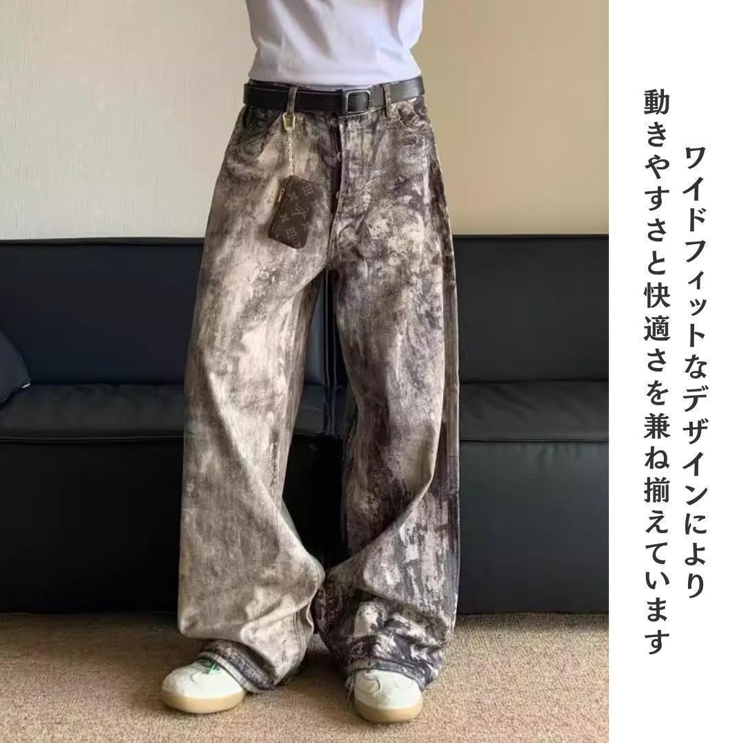 ウォッシュドデニムパンツ プリントデニム デジタルプリント ヴィンテージ ジーパン ワイドシルエット ワイドデニム フレアパンツ バギーパンツ 迷彩 カモ柄デニム y2k 激太 アメカジ ハイウエスト 地底人 カーブデニムパンツ ワイドシルエット ハイウエスト 体型カバー 韓国 中国 インポート