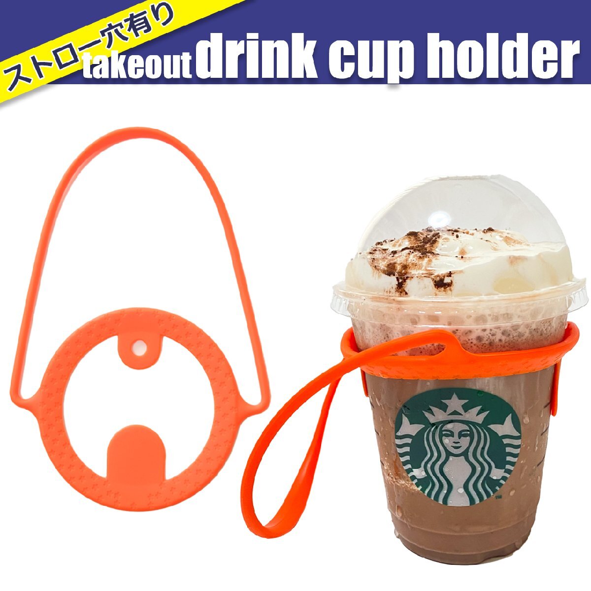 ドリンクカップホルダー ドリンクホルダー コンビニコーヒー スタバコーヒー ストローホルダー付き 持ち運び 橙 オレンジ