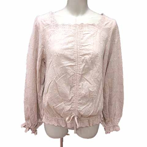 ヘザー Heather ブラウス シャツ ペプラム スクエアネック 刺しゅう 長袖 F ピンクベージュ /YK レディース