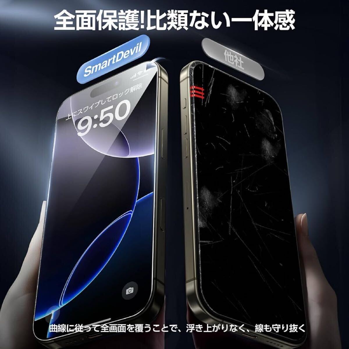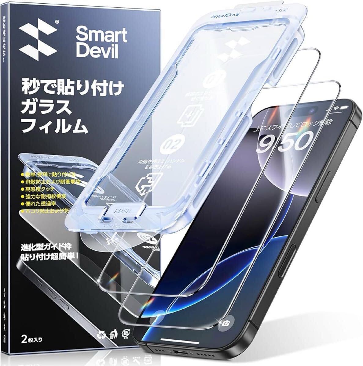 【HD光沢・超クリア】SmartDevil iPhone 16 Pro Max ガラスフィルム 2枚 貼りやすい 超簡単 指紋防止 浮き/気泡なし 超スムースタッチ いphone16promax ガラスフィルム 全面保護 超9H耐衝撃 落下保護 強化ガラス iPhone 16 Pro max (6.9インチ) 対応「画期的なガイド枠」