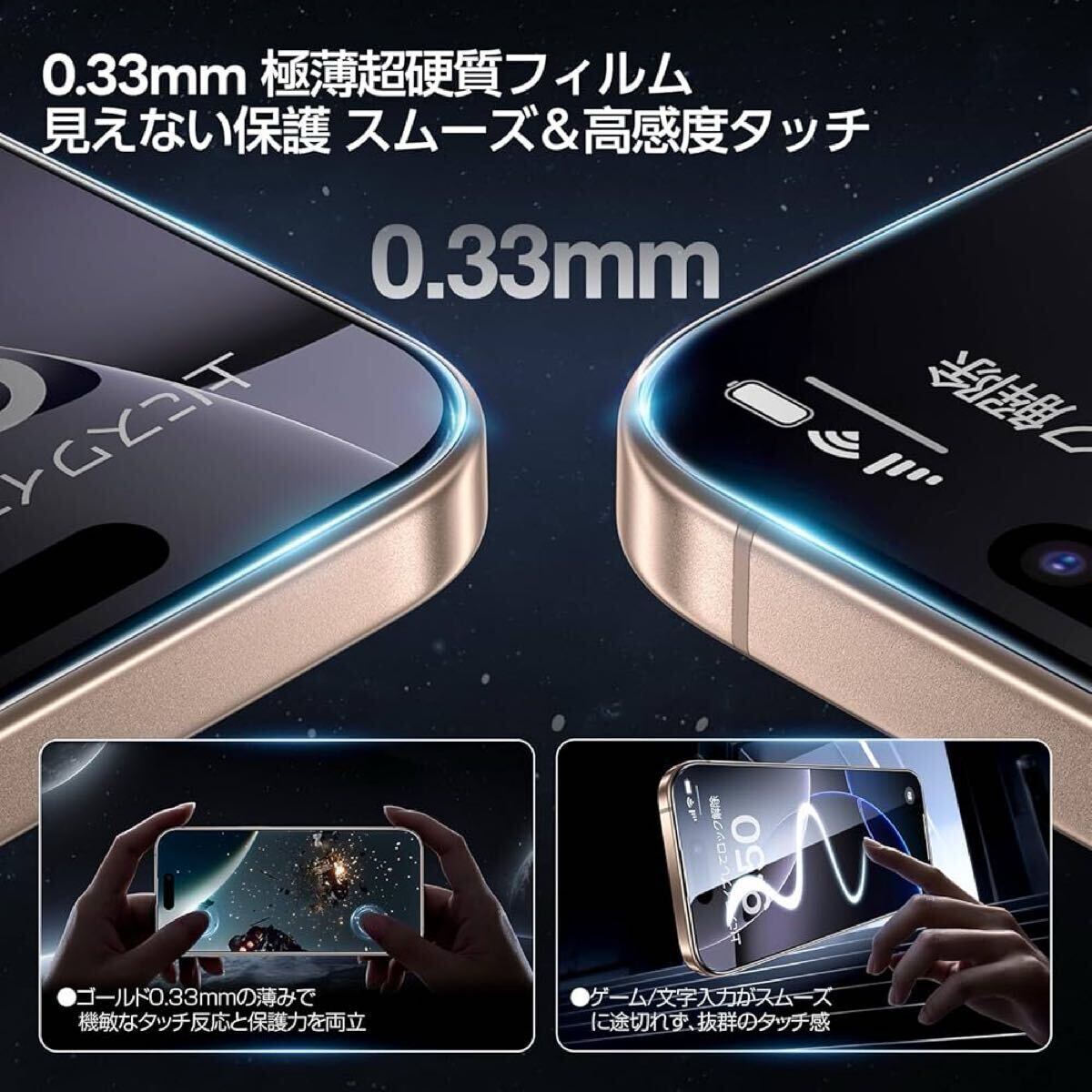 【色透過率99.98%】最新光学ガラス技術を通じて、無色透明で、ほぼ100%の透過率を達成します!0.3mmの薄みで機敏なタッチ反応と見えない保護を両立し、ゲームと文字入力がスムーズに途切れず、抜群のタッチ感があります。臨場感があふれる超クリアな画質を取り戻し、画像ロスがゼロで、クリアなiPhone16promaxのオリジナル画面体験を満喫します!