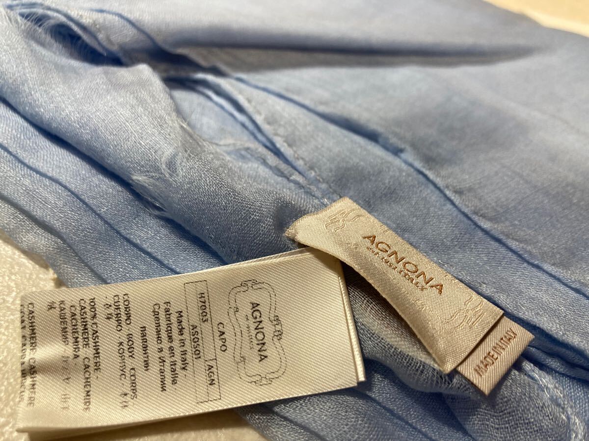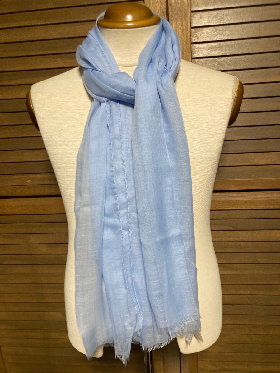 新品 アニオナ(伊) カシミア100%素材の春夏秋用ストール/スカーフ 200×70 薄水色 超軽量す 逸品! 定価13.2万円
