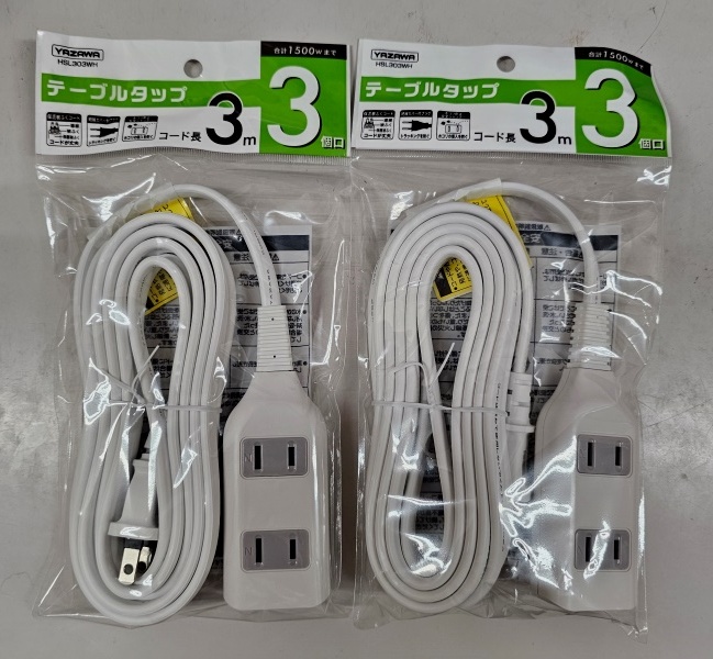 1.新品 未開封品 YAZAWA テーブルタップ HSL303WH (3個口/3m / 15A/125V)  2個   売り切り  !!  です。