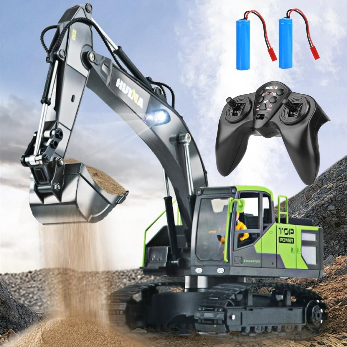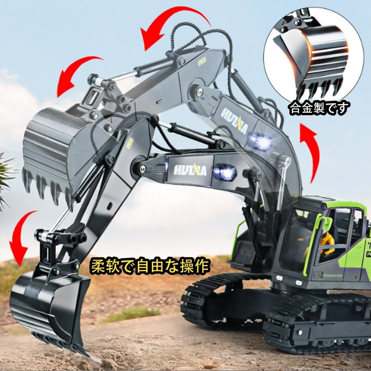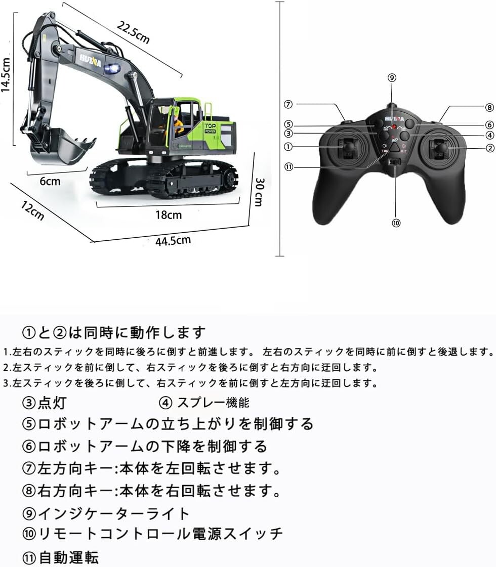 【優れた性能】前進、後退、左右旋回、キャタピラーは360度を回転できて、ボディも左右に最大680度まで回転可能、物をさまざまな方向に簡単に移動できます。小さい山や障害物を乗り越えることも可能で、まさに本物の働く車と同じような作業体験ができます。