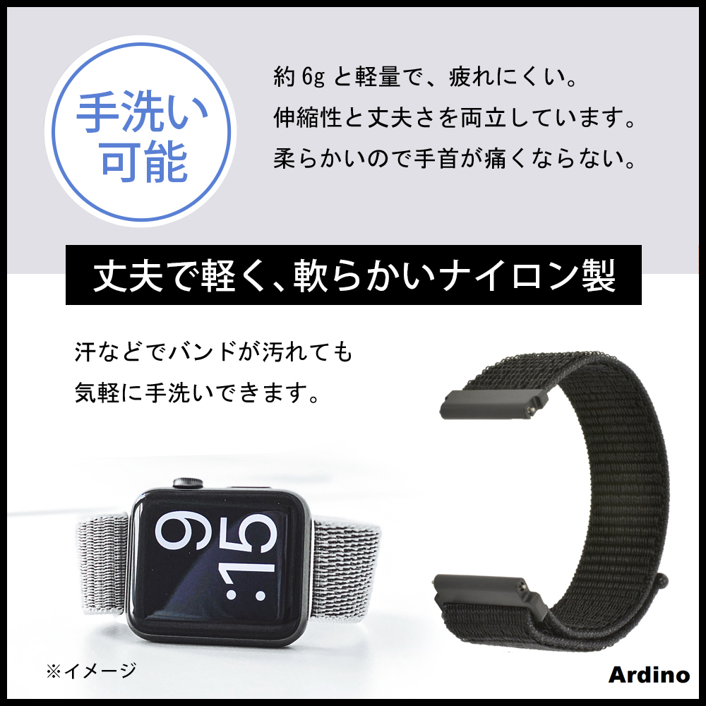 取付幅(ラグ幅)20mmmのスマートウォッチや一般的な腕時計にお使いいただけます。