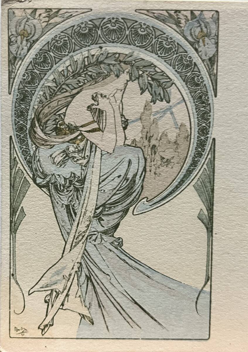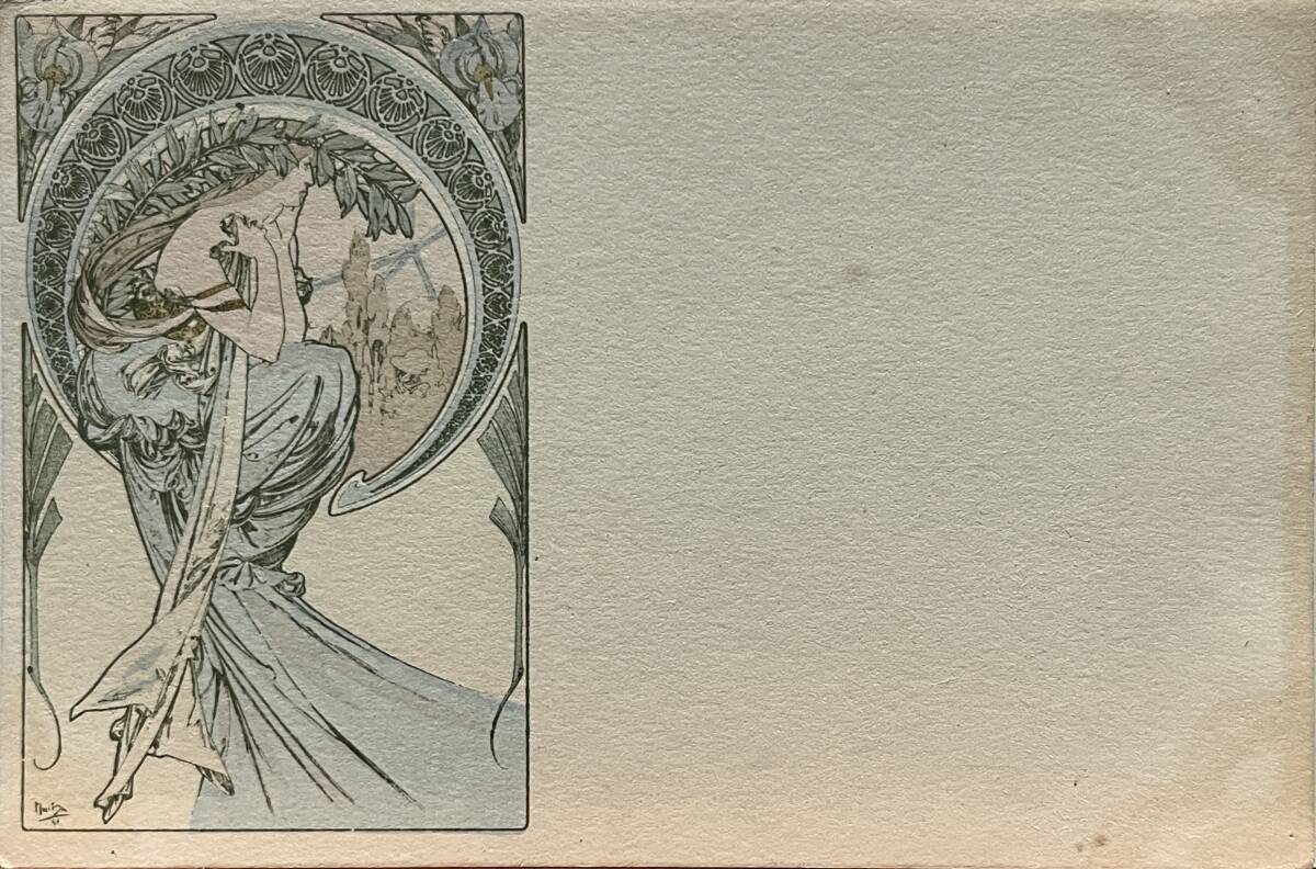 ★ アルフォンス・ミュシャ「四芸術 ポエム」オリジナルリトグラフ絵はがき | |||