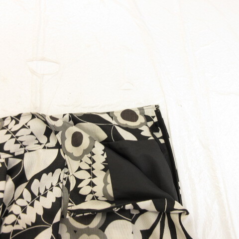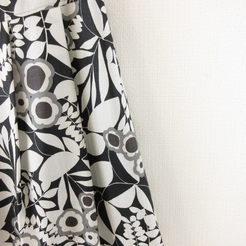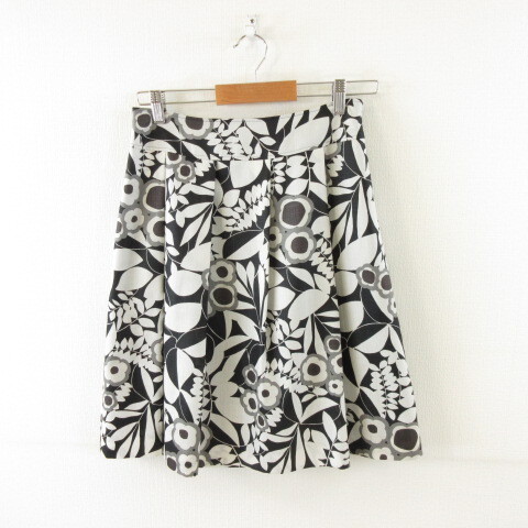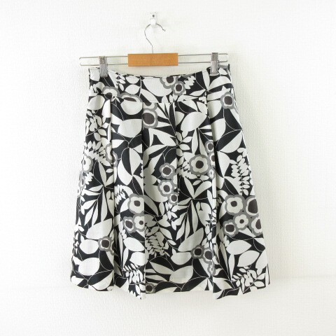 リフレクト Reflect プリーツフレアスカート ひざ丈 花柄 黒 オフホワイト 40 *A935 レディース
