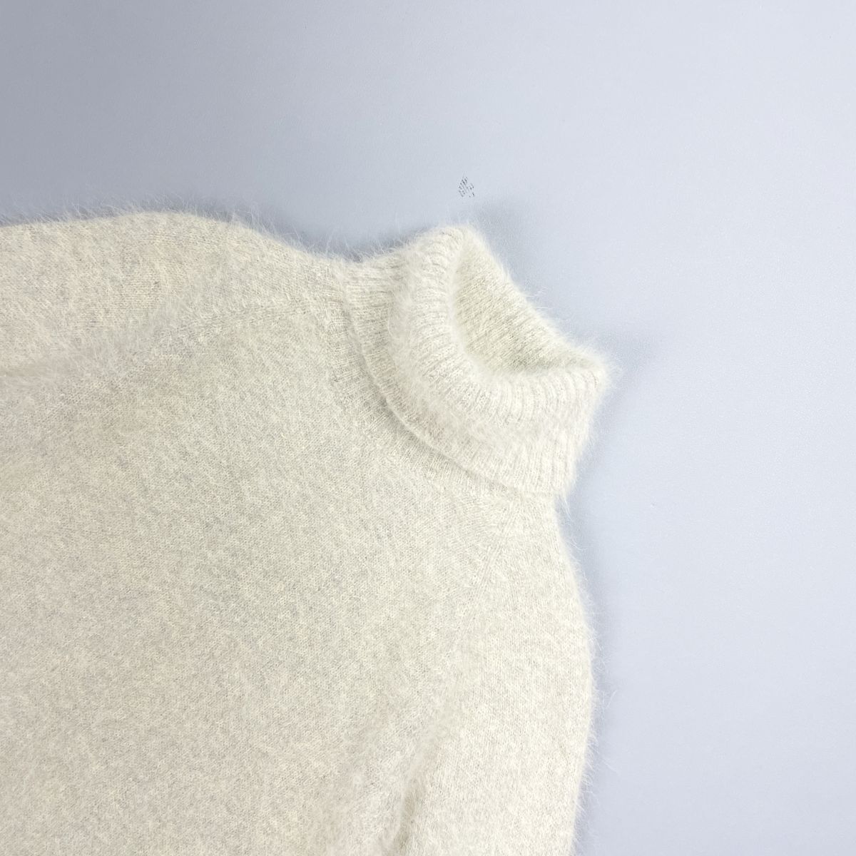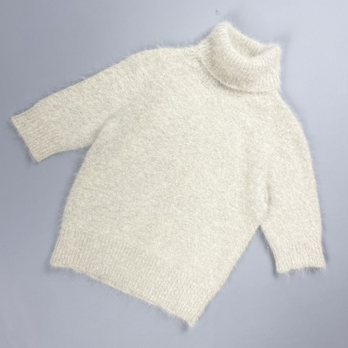 美品 THE LIMITED ザリミティッド アンゴラタートルネックニット 五分袖 レディース グレー アイボリー サイズS*ZC229