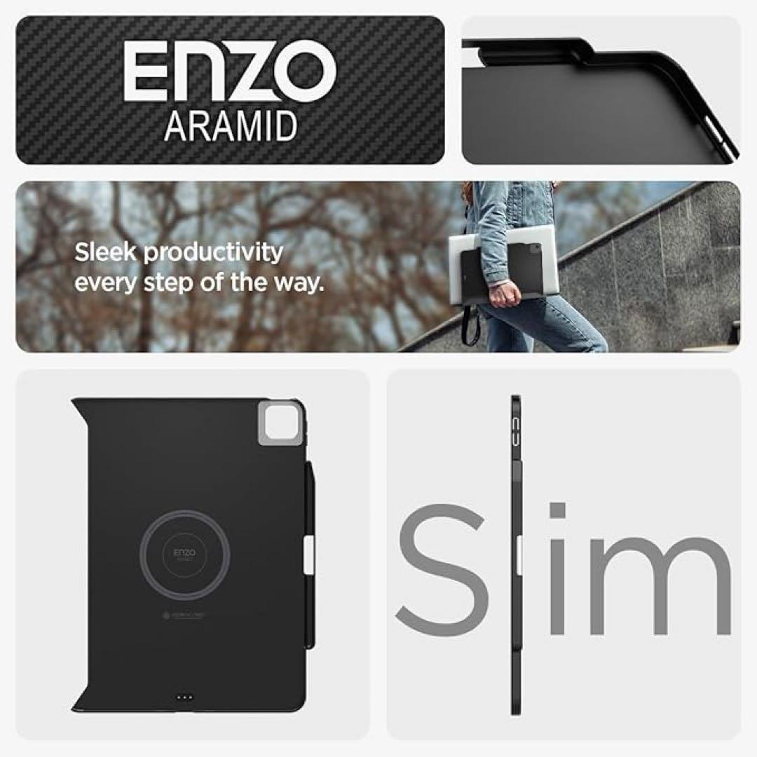 Spigen iPad Air 13インチ ケース M3/M2 (2025/2024年) 耐衝撃 米軍MIL規格取得 傷防止 ディテール設計 レザー エンゾ・アラミド ACS07670 (ブラック)