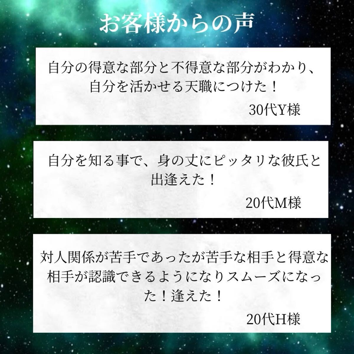 また、貴方様自身の今後の運気の流れを知ることで、さらに飛躍的に現状把握が進み、より明確に夢を叶える方向へエネルギーを注ぐことが可能になります。