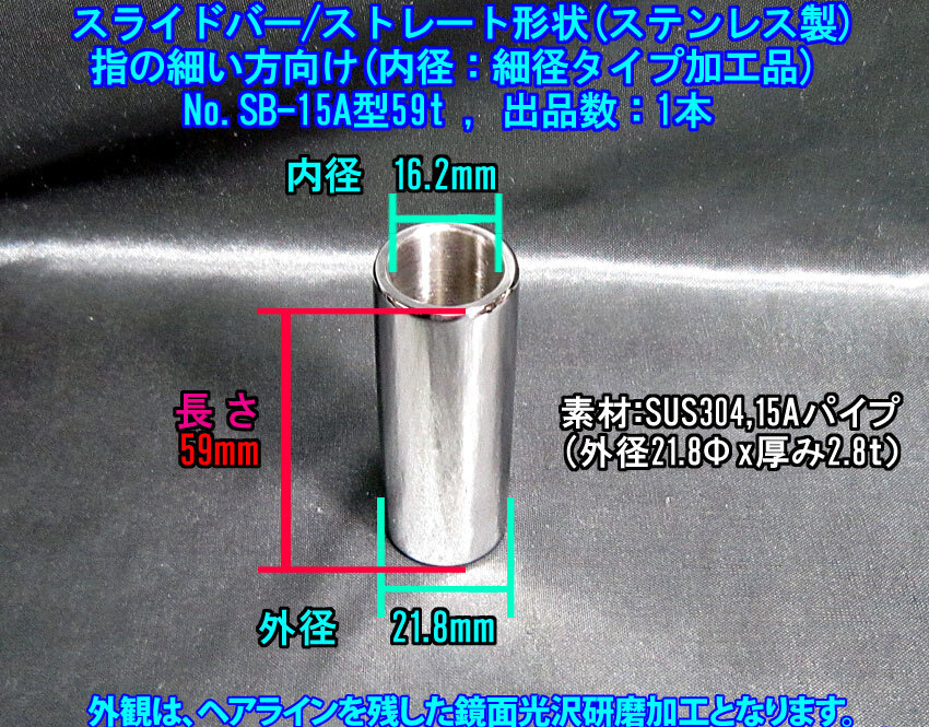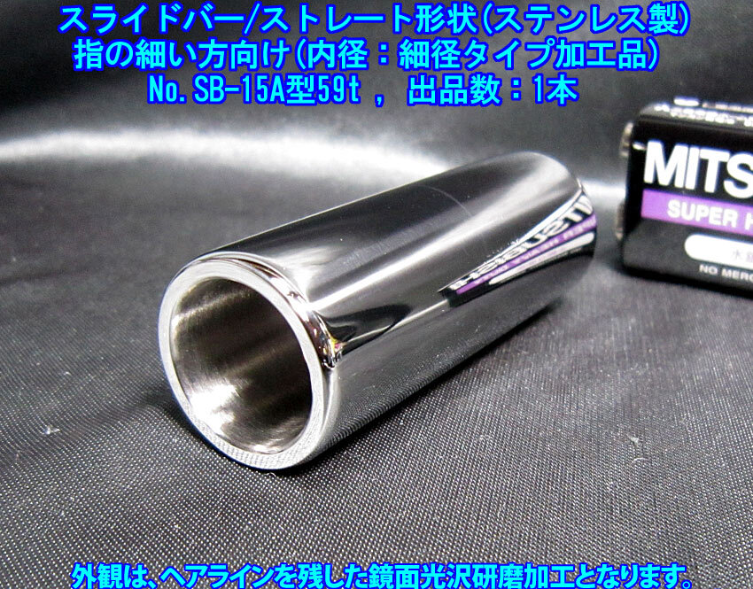 *手作り品 指の細い方向け スライドバー/ストレート形状/小径タイプ(外径21.8mmx内径16.2mmx長さ59mm) ステンレス製/厚肉パイプ品,1本出品