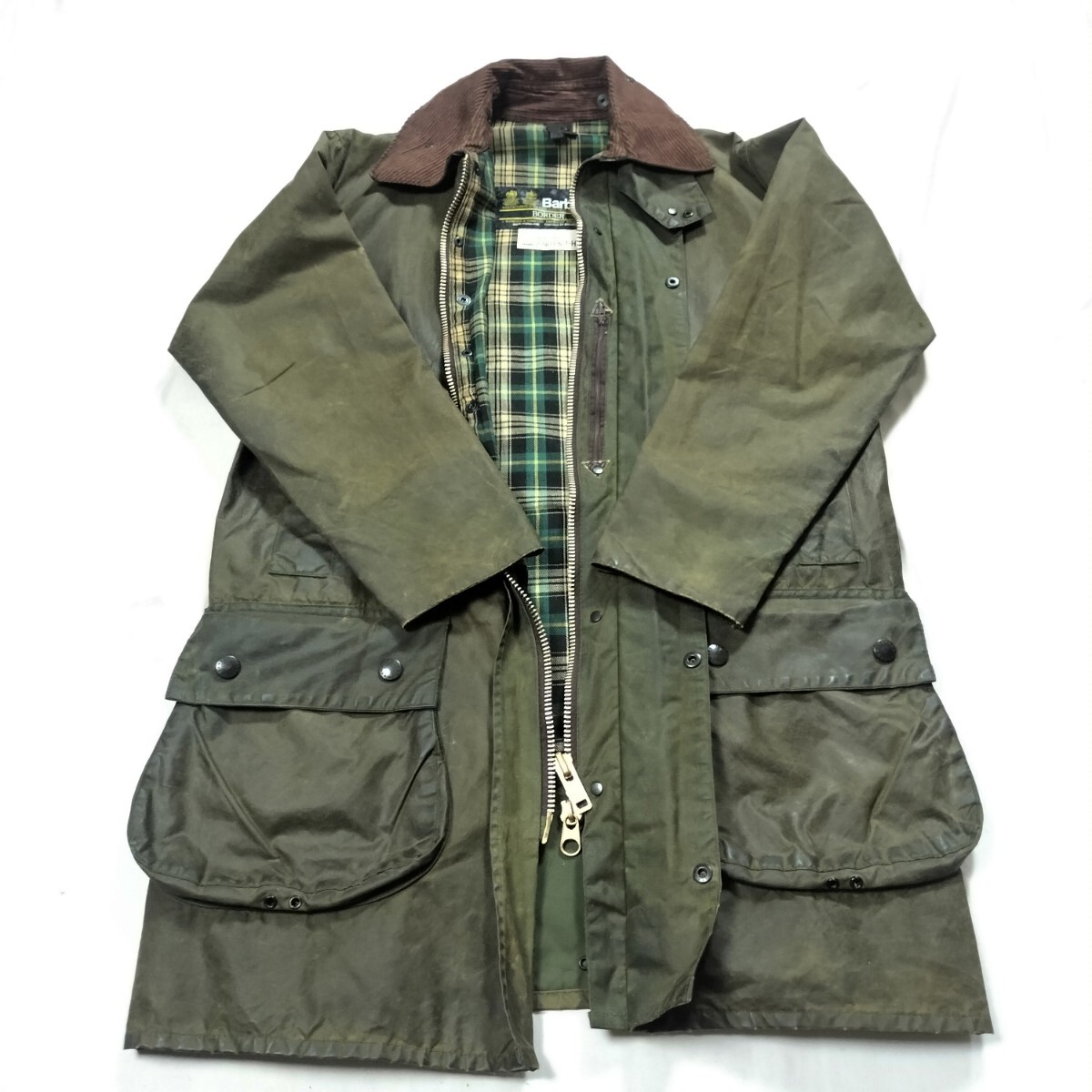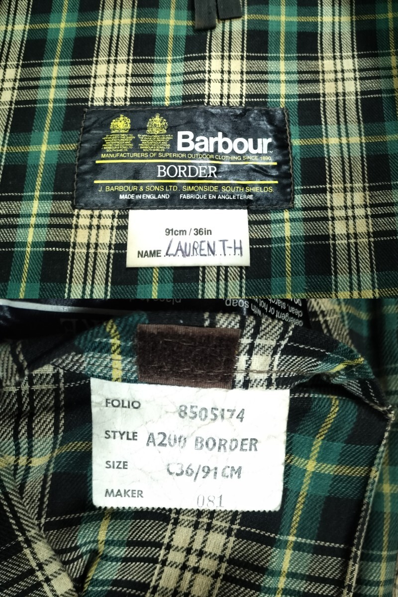 80s Barbour BORDER 36バブアー ボーダー オイルドジャケット YKK棒ジップ