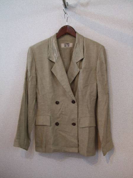 | 商品紹介 | デザイン性のあるダブルのジャケットとロングのスカートの スーツです。 ジャケットは二の腕~肘の辺りまでゴムでギャザーが入り、 後ろの腰辺りにはベルト飾りが付いています。 スカートはロングの台形です。 色は明るめの淡いカーキです。 ※肩パット入り 《素材》 綿35% 麻35% レーヨン30% |