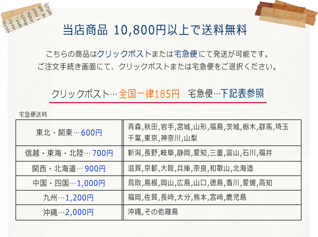 | 送料 | ●宅急便を選択しますと、ご希望の配達日時を指定いただけます。 ●複数まとめてのご購入で送料超過請求となった場合、ご購入後に当方にて再計算いたします。銀行振り込みのお客様は、当方からのお取引メールにて送料をご確認後にお振込みをお願い致します。paypay、クレジットカードでのご決済は、送料を当方にて変更させていただきます。 ●落札金額10,800円以上のお客様は送料が無料となります。 |