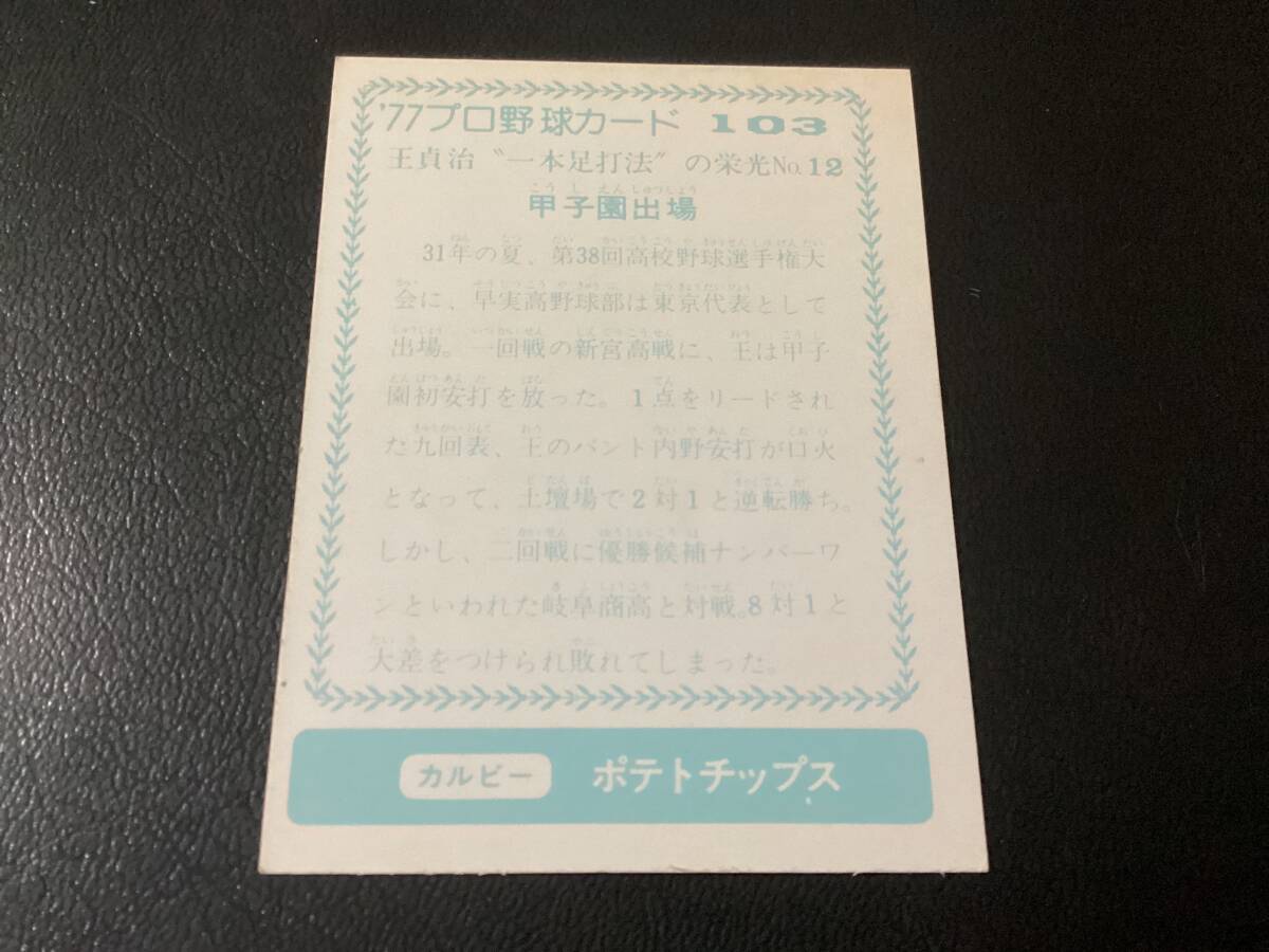 良品 カルビー77年 青版 王貞治(巨人)No.103 プロ野球カード