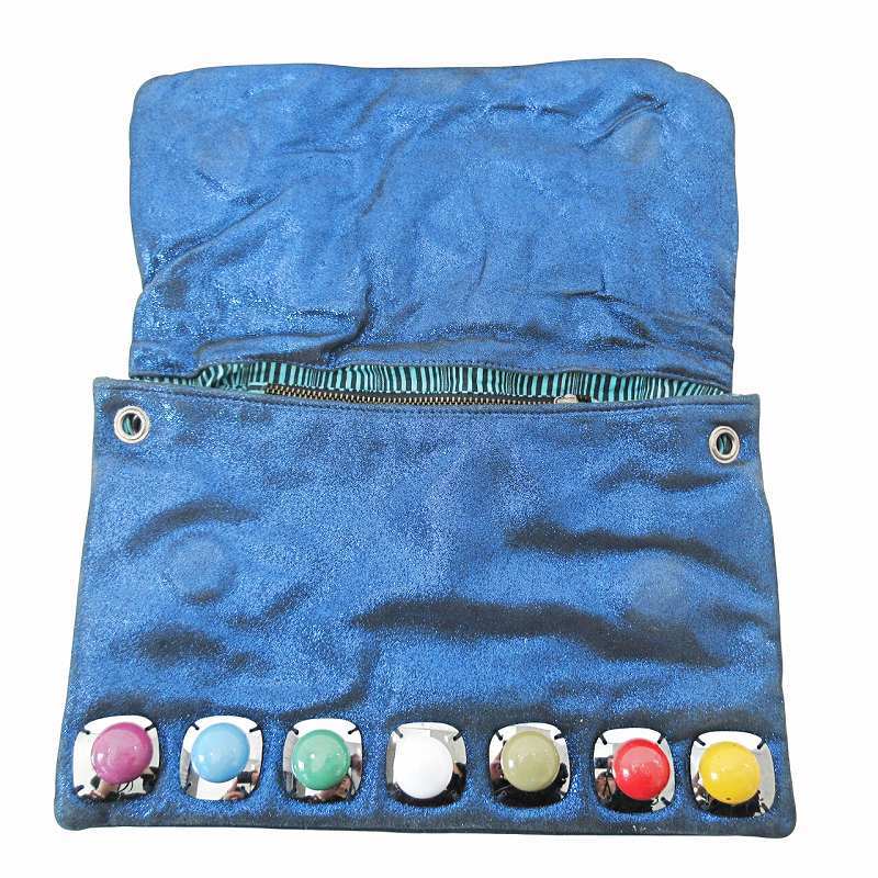 ジャマンピュエッシュ JAMIN PUECH クラッチバッグ ショルダーバッグ レザー 装飾 ブルーラメ 青 0311 IBO68 レディース