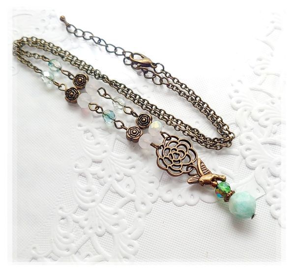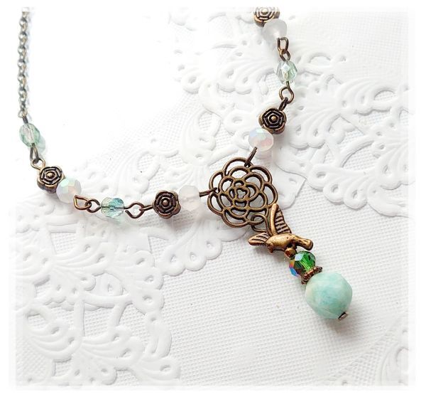 n101*・*アマゾナイトと小鳥と薔薇のネックレス* | ![]() |
