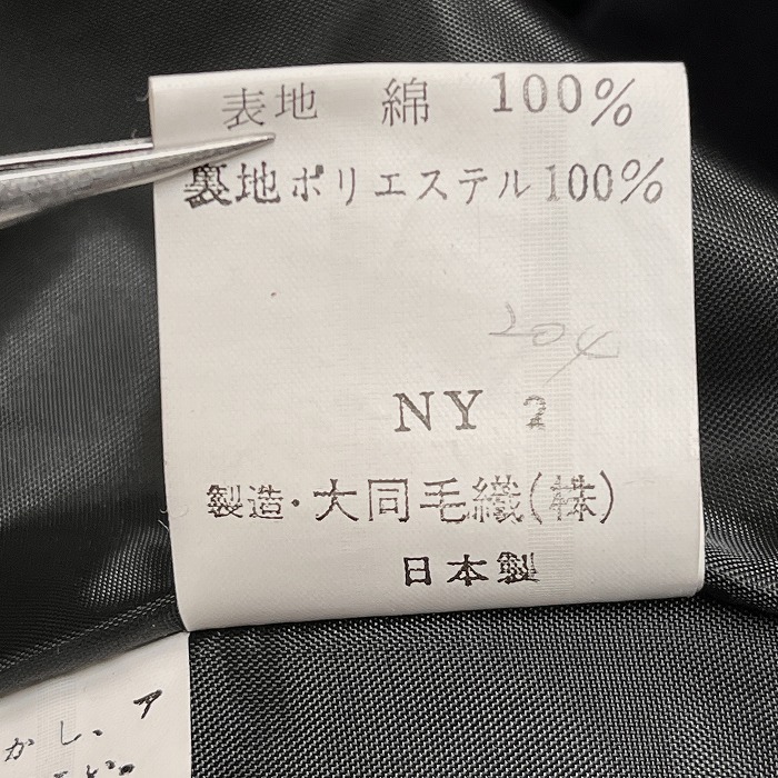 商品状態・ディテールなど | (※実測寸法など、多少の誤差はご容赦下さい。) (※商品は衣類の場合は全て畳んで保管しており、服飾雑貨も靴以外は必要に応じ畳んで保管しております。保管や梱包による畳み皺などはご了承下さい。) ●気になったダメージの場所と種類: ・所々:- ・全体:- ・肩:- ・襟:- ・胸:- ・腹部:- ・裾:- ・右袖:- ・左袖:- ・袖口:- ・背中(上):- ・背中(下):- ・内側:- ●その他ディテール:ノーベント、内ポケット無し、薄手の肩パッド入り ●付属品など:- ●その他:日本製 |