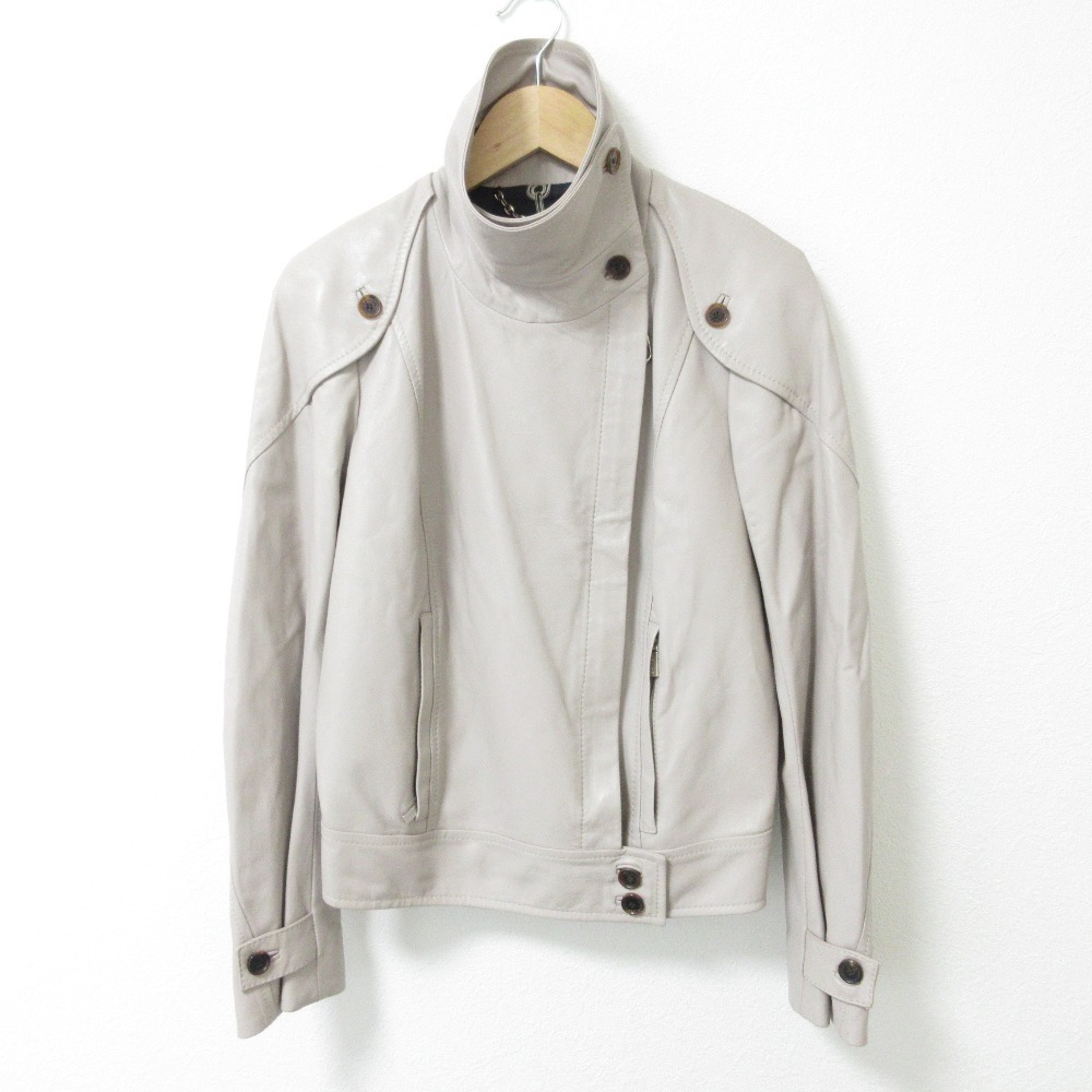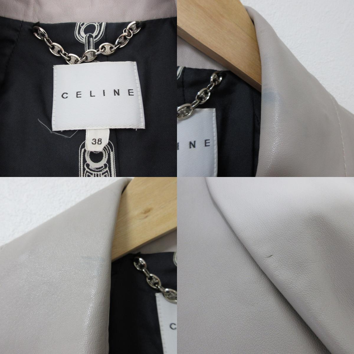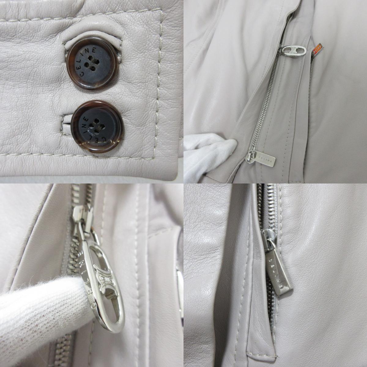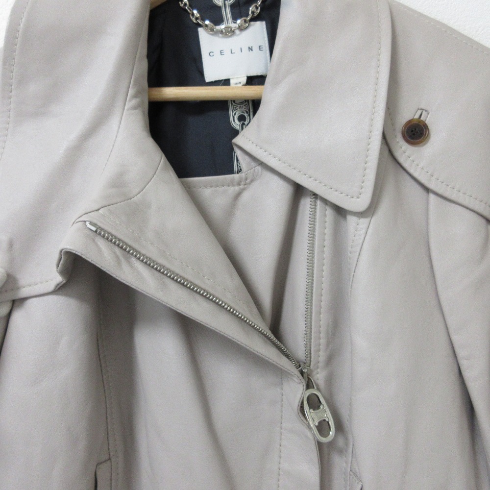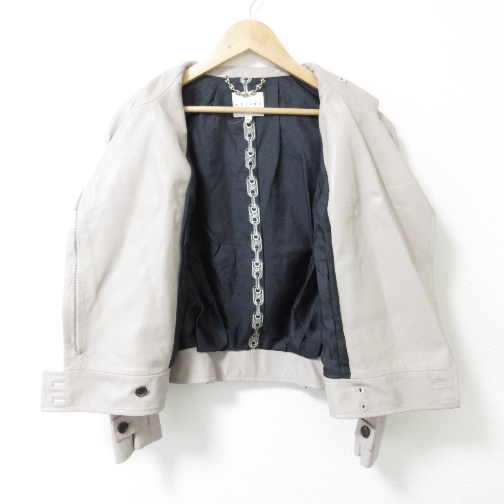 良品 CELINE セリーヌ 裏地チェーン柄 ラムレザー ダブルジップ ライダースジャケット バイカージャケット 38 ベージュ