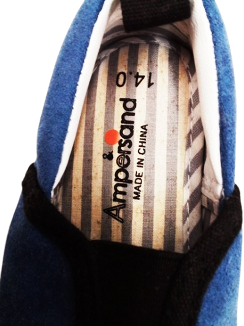 sh1306 ◇送料無料 新品 (訳あり) Ampersand アンパサンド ベビー デザイン スリッポン 14.0cm ブルー ブラック 異素材 スウェード調