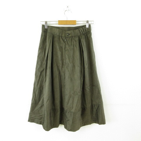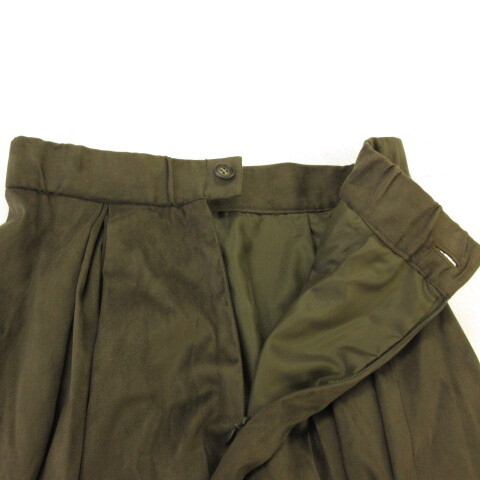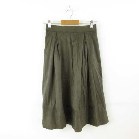 エヴァーキューブ evercube スカートミディ丈 フレア フェイクスエード カーキ 緑 9 *T898 レディース