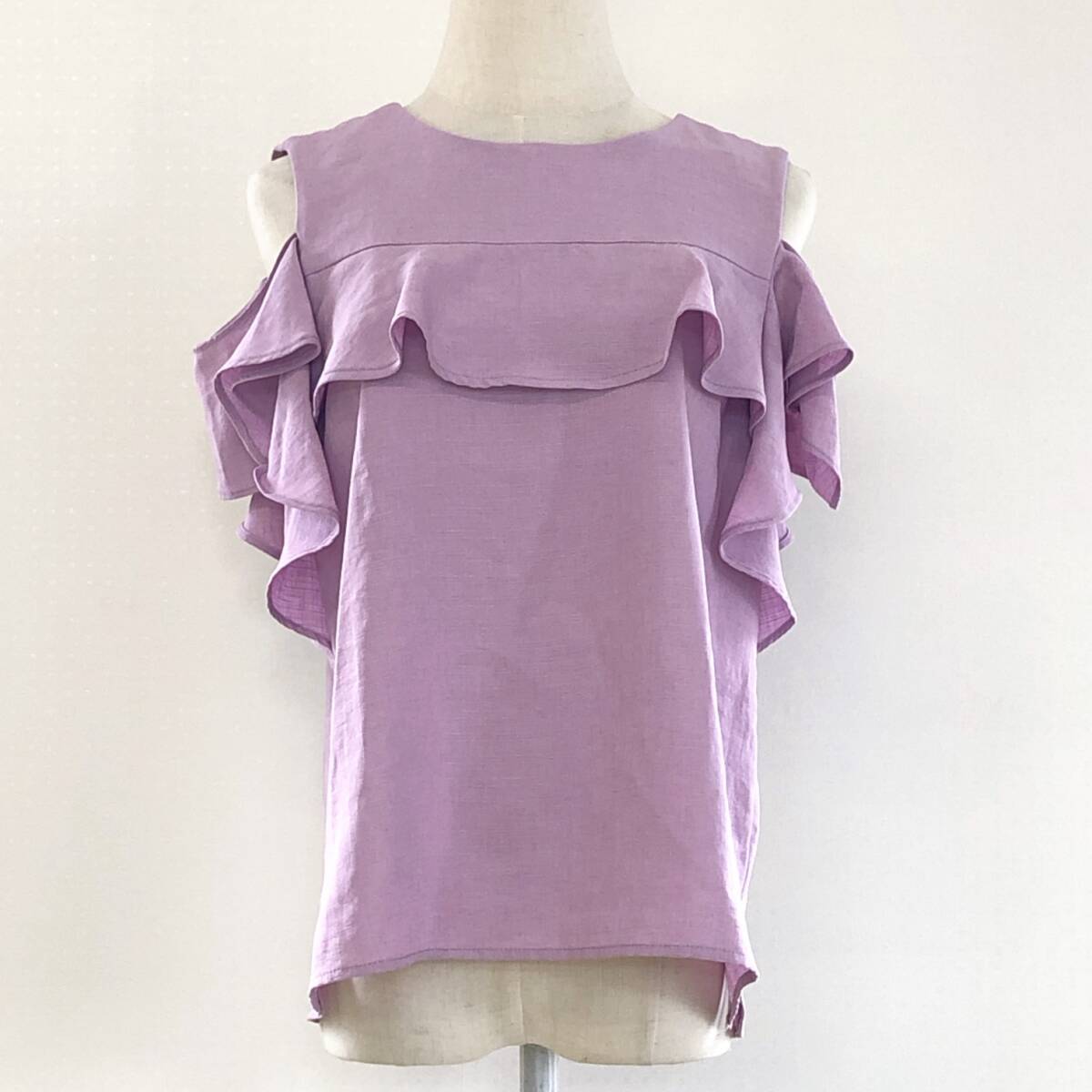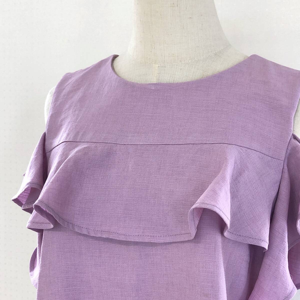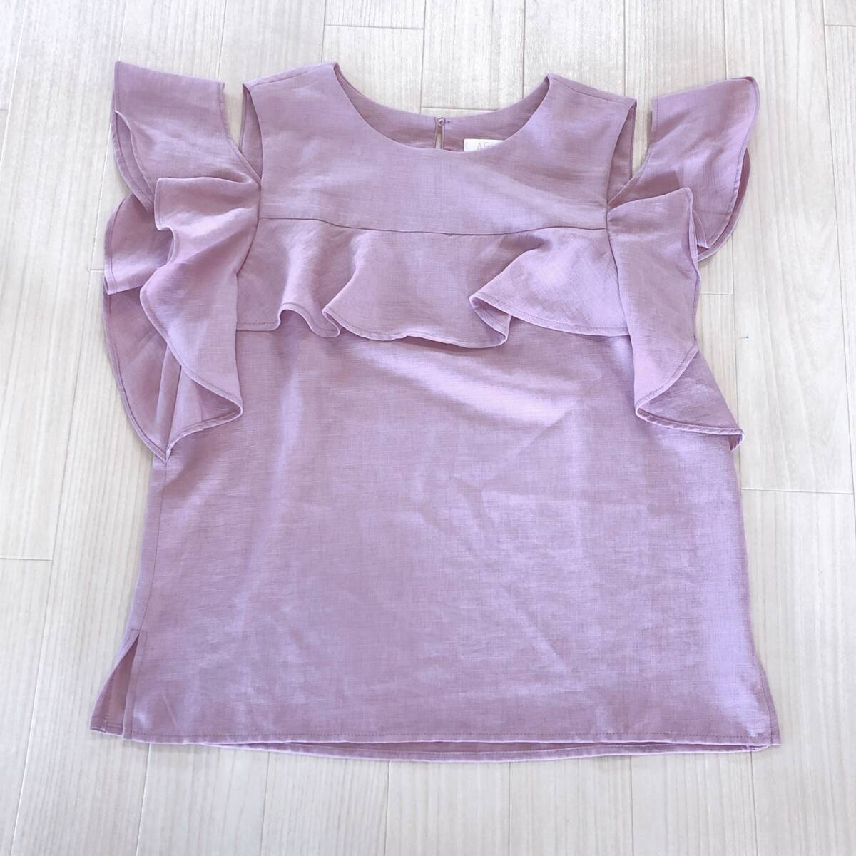YX1492 AG by aquagirl エージーバイアクアガール レディース トップス オフショル スリット フリル 薄手 背中ボタン有 紫色 おしゃれ