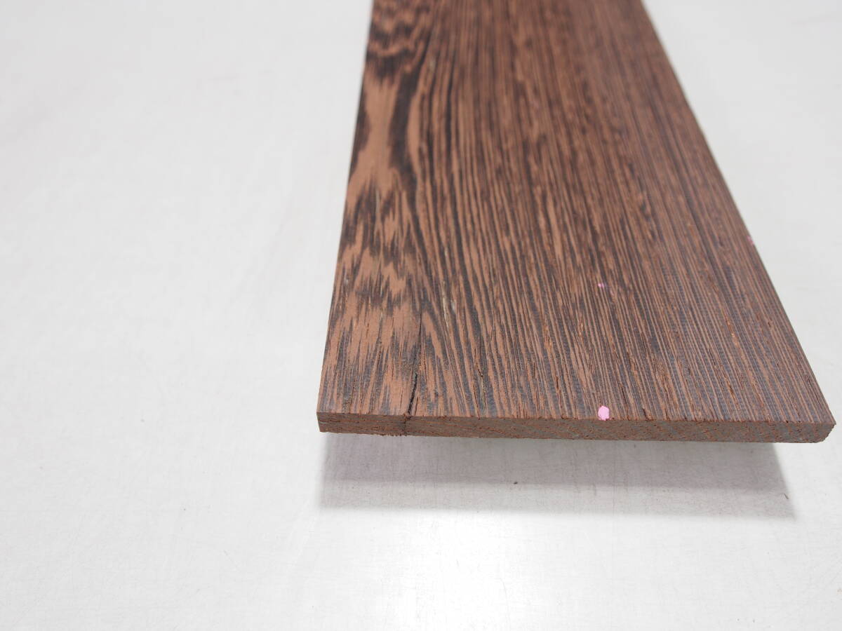 ウエンジの薄板  表と木口、裏面と反対木口と割れの写真です。