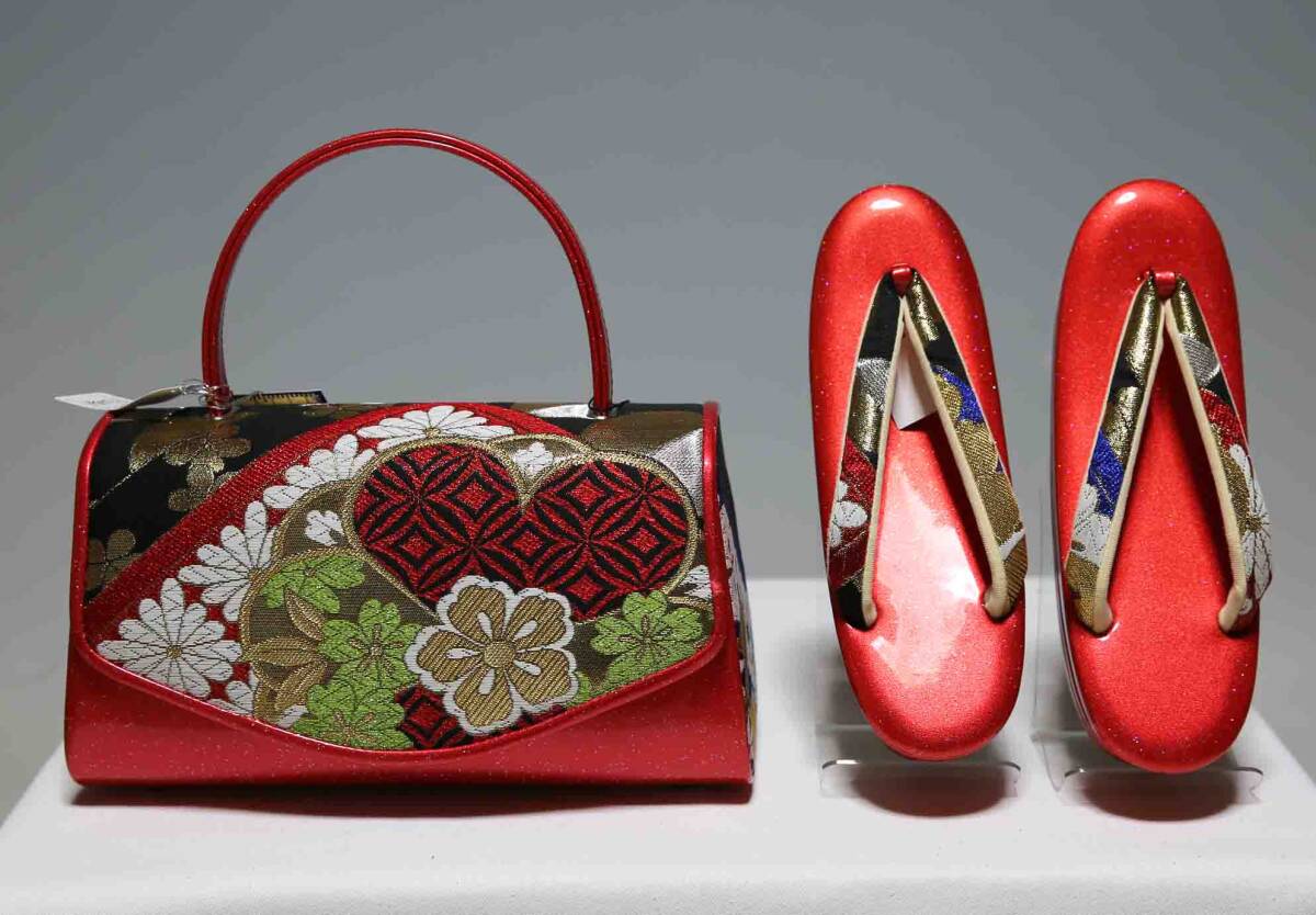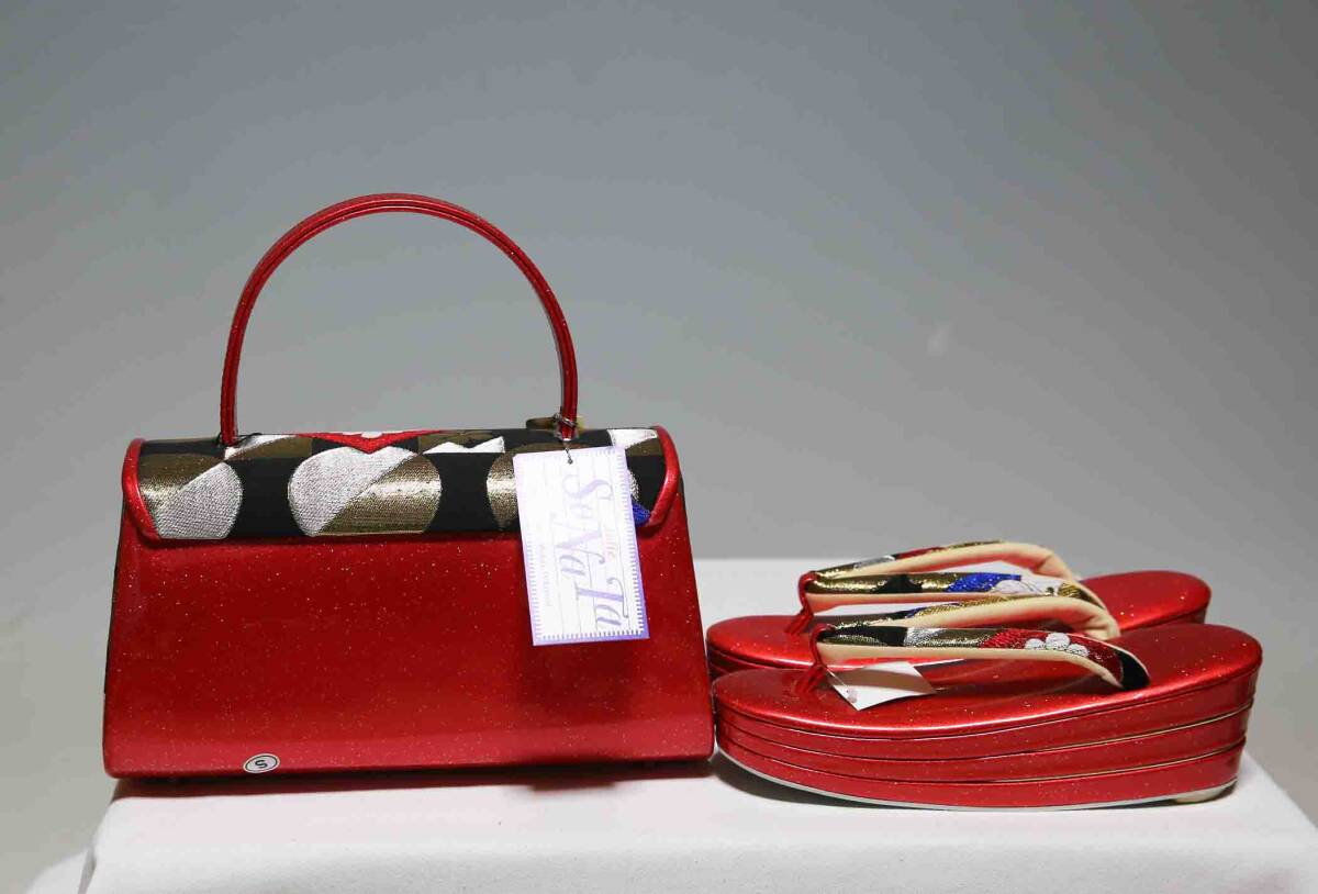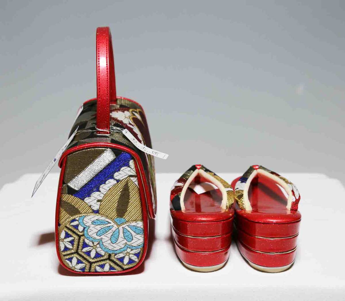 彩小径 SoNaTa 和装用草履バッグセット 日本製 素材はありませんが模様文化学繊維、無地部分合皮だと思います 和装用の草履バッグの場合材質表記義務が無いため、材質表示がない商品が多くあります 材質表示のない商品の場合は、当方が見た目や今までに扱ってきた経験等から推測で表記しています 材質の表記が違っている可能性もありますご了承ください サイズ 草履サイズ フリーで靴サイズで 24.5cm 位の方まで使用可能です 草履は3枚芯です かかとの高さ約6.8cm つま先約3.3cm バッグ 横約27.5cm 高さ約15cm(取って含まず) マチ幅約10cm(最も広い部分) 和装用の草履の場合靴とは違いかかとから足が2cm位出ても問題はありません。また鼻緒は新しい時はきつめになっていますのでつま先がおくまではいらない場合もありますがこれも問題ありません。鼻緒は数回使用すると若干伸びて楽になります 収納用の箱は 傷みがあります。 | |