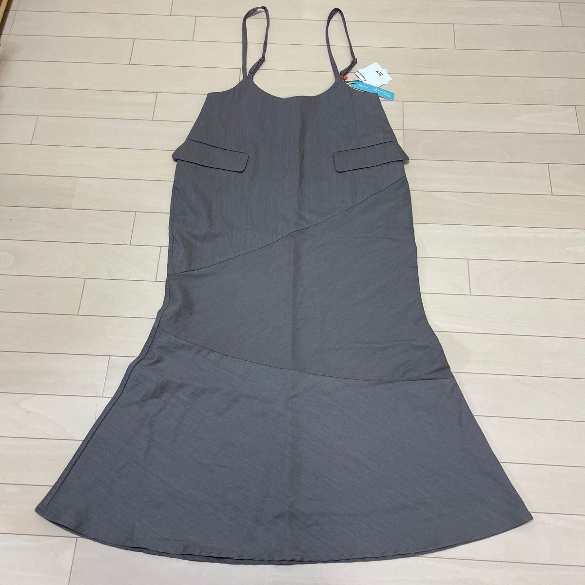 新品のワンピースです。切り替えが入っていてスッキリと着られます。肩紐は調節出来ます。裾が広がっていて着るとかわいいです…平置きで身幅39cm、着丈約118cmになります。裏地が付いているので安心です