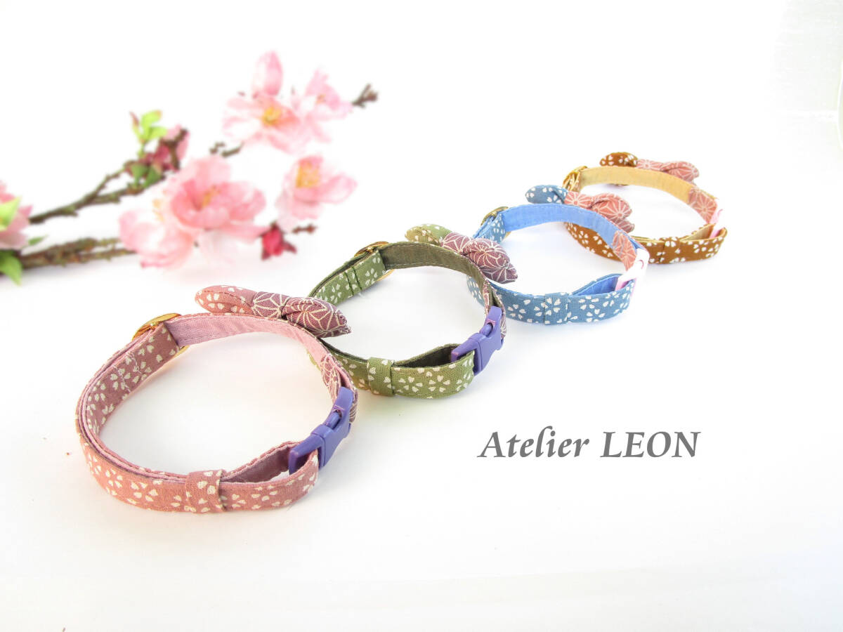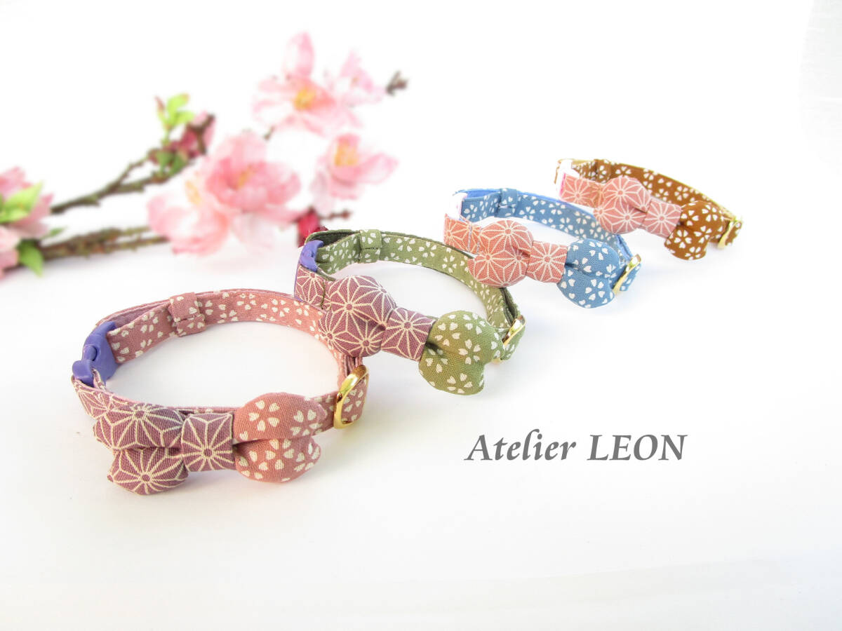 麻の葉寄り添う桜リボン*ハンドメイドの猫ちゃん首輪