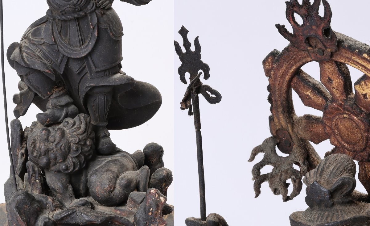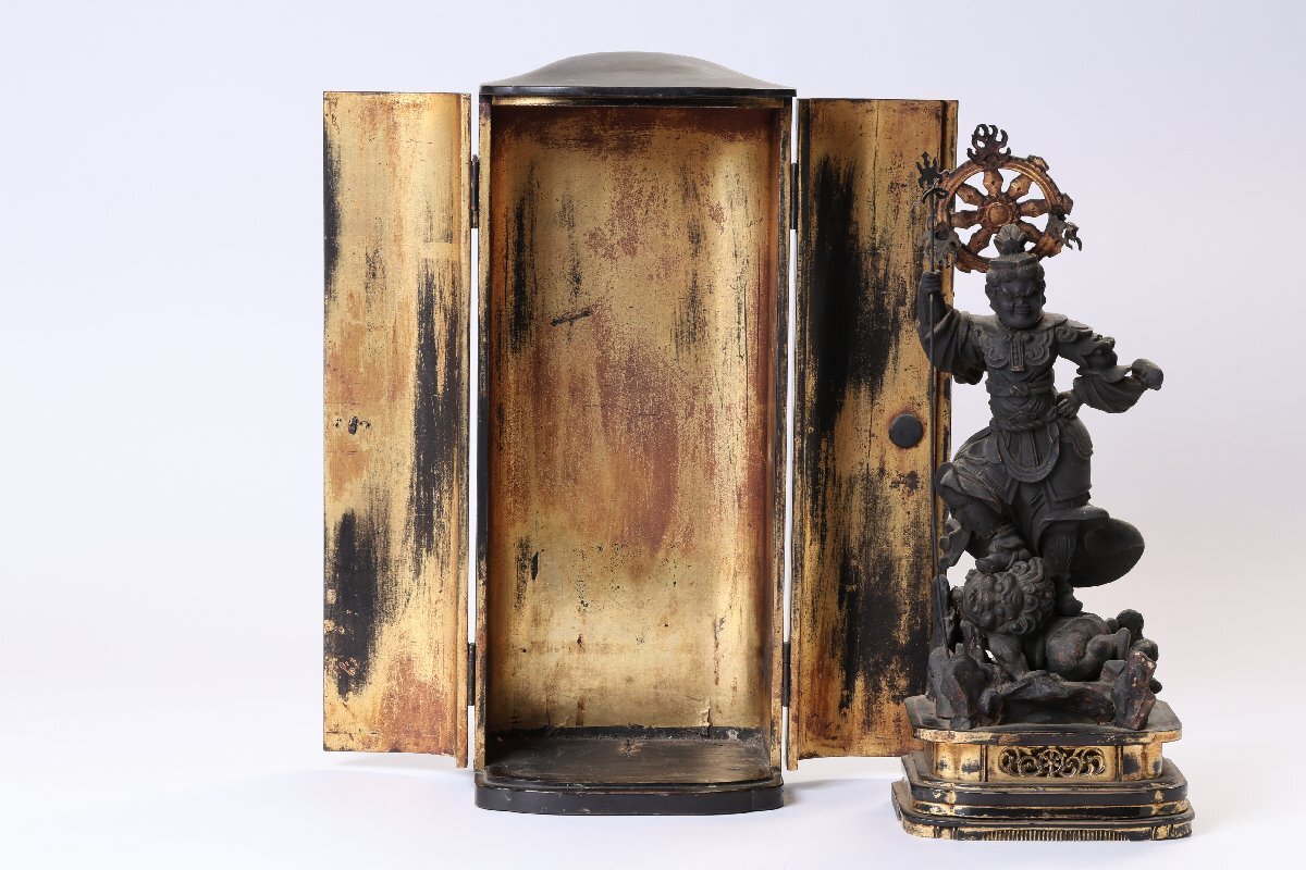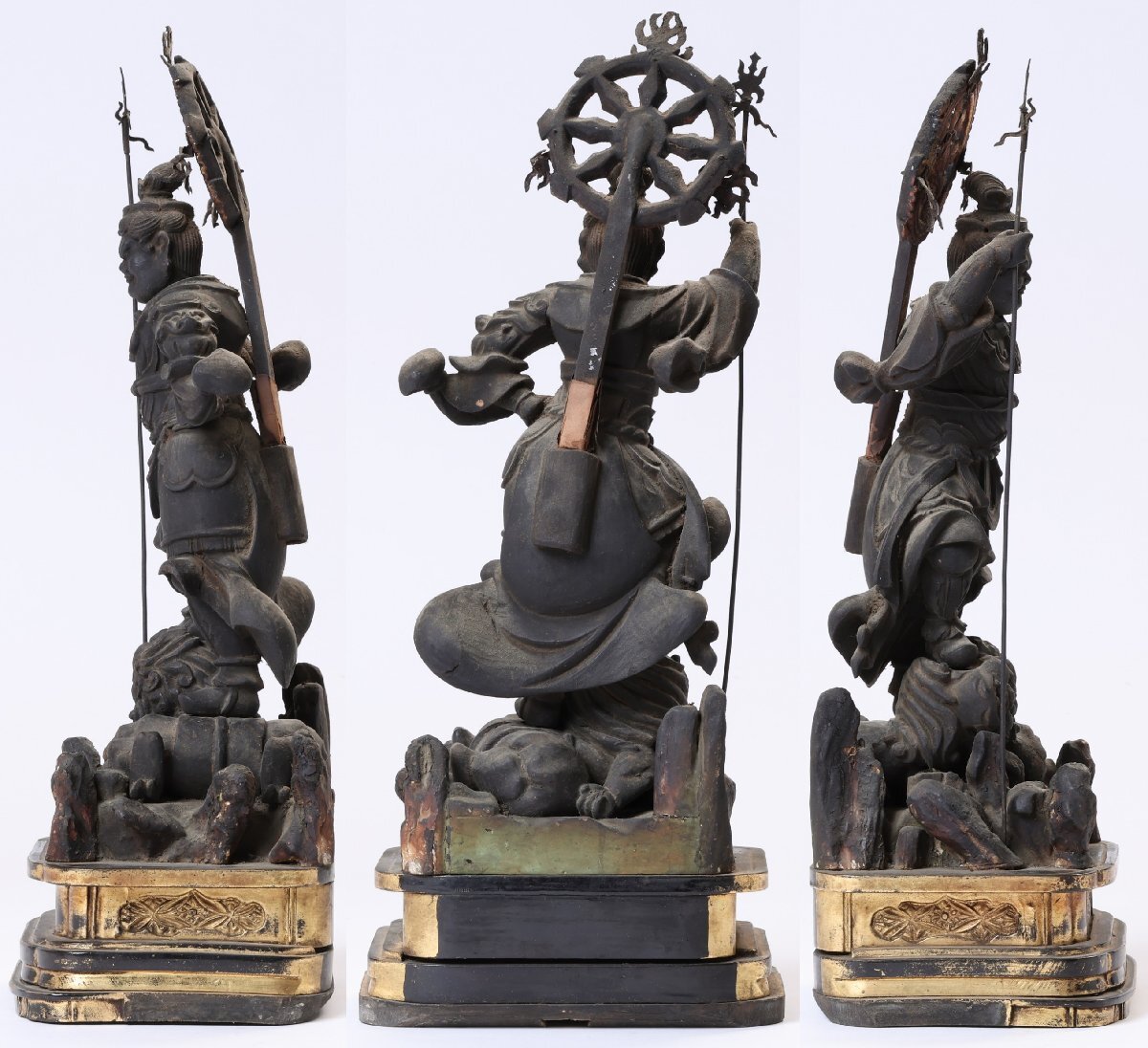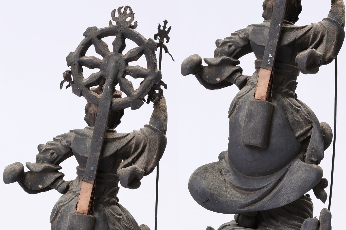 【商品名】 時代 仏像 木彫 増長天立像 厨子 四天王の一尊 密教 仏教美術 オブジェ 【状態】 経年によるキズやヨゴレ、イタミ、ヒビ、割れ、欠け、破損、剥落がございます。 上記を含む商品の状態や詳細(材質等)を写真にてご確認いただき、納得された上での入札をお待ちしております 【大きさ】 仏 高さ:約 40cm 幅:約 16.5cm 奥行き:約 12.5cm 厨子 幅:約 43cm×18cm 高さ:約 15cm (採寸につきましては多少の誤差があるかと思いますので、予めご了承ください。) |
