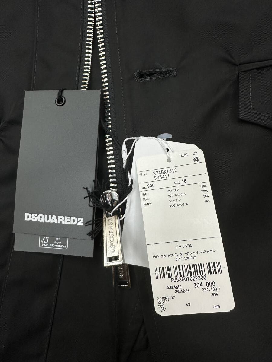 25'春夏新作☆Dsquared2☆ICON☆ディースクエアード☆ナイロン☆Wジャケット☆ファスナー付き☆黒☆48サイズ
