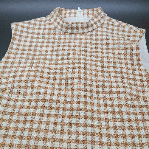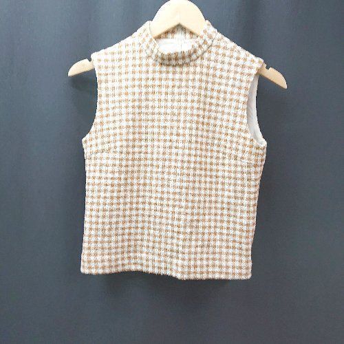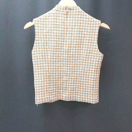 ◇ GINGERALE TOKYO シェパードチェック柄 裏地あり ファスナー 袖なし ベスト サイズ99 ブラウン/ベージュ レディース E