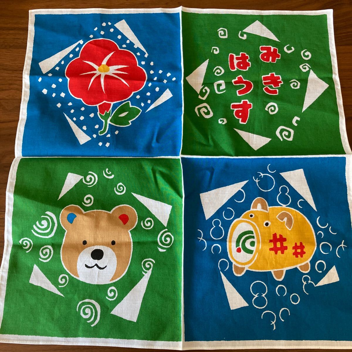 ミキハウスの大判ハンカチ、新品です。サイズは約縦47×横45cmです。