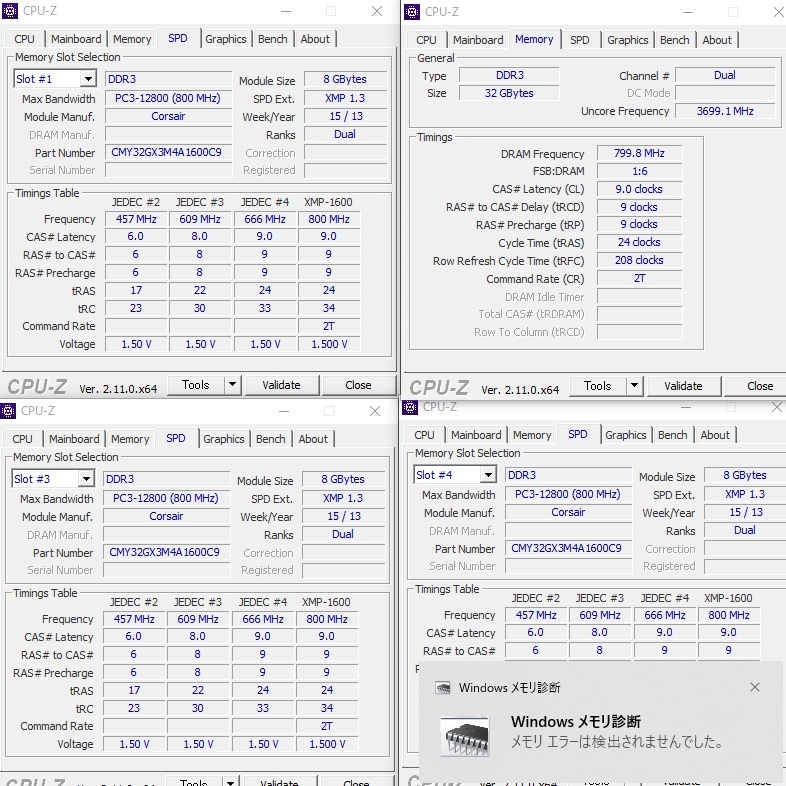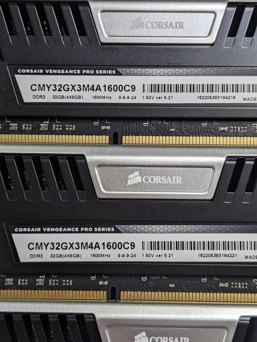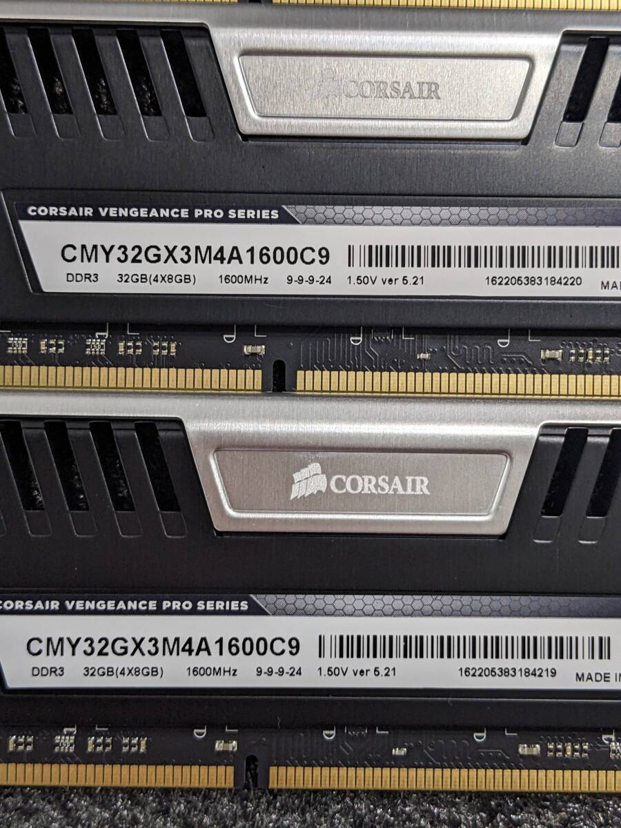 コルセアのDDR3メモリ、8GB4枚組合計32GBのセットです。