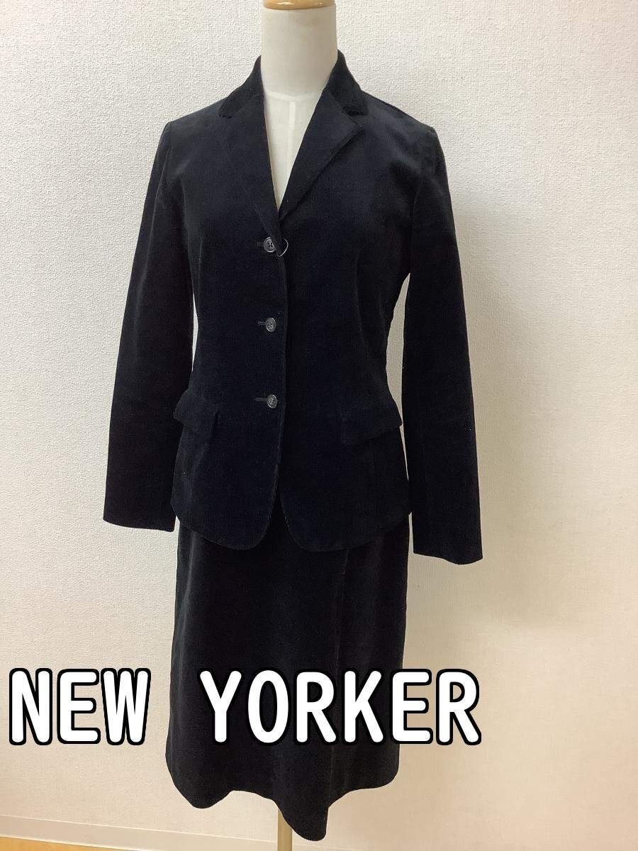 管理番号:10^138817 ニューヨーカー (NewYorker) 黒コーデュロイスーツ ストレッチ 表示サイズ:ジャケット9AR スカート11 実寸(参考)
