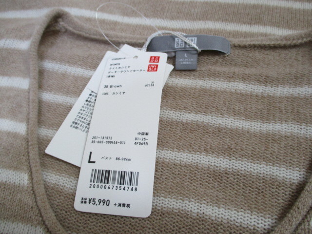 新品 ユニクロ UNIQLO カシミア100%セーター L 秋冬 レディース