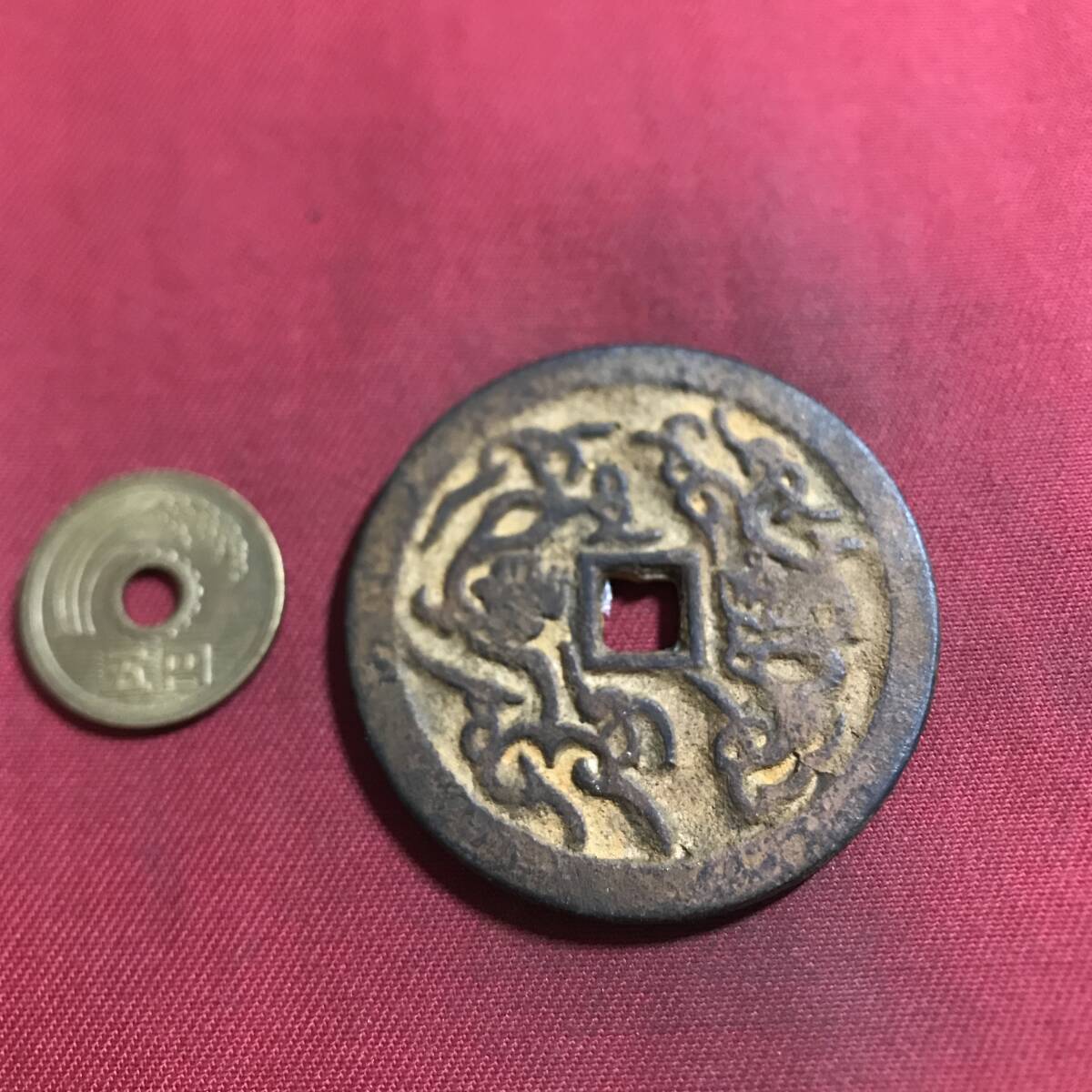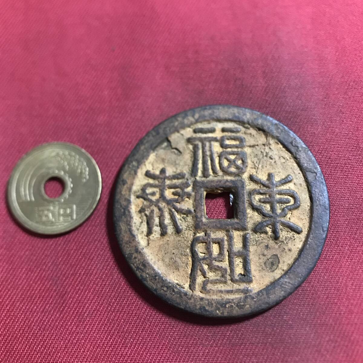 花銭  福 ? 東 ?  背  龍の柄?  銅銭  (外-93)