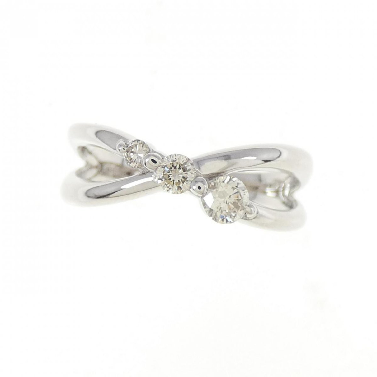 クリアに煌めくダイヤモンドがセッティング。指元でクロスするアームが上品なデザインです。