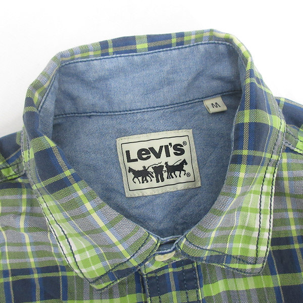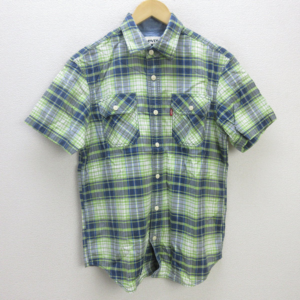 G■リーバイス/Levi's 半袖シャツ/チェック柄【M】緑系/men's/160【中古】■
